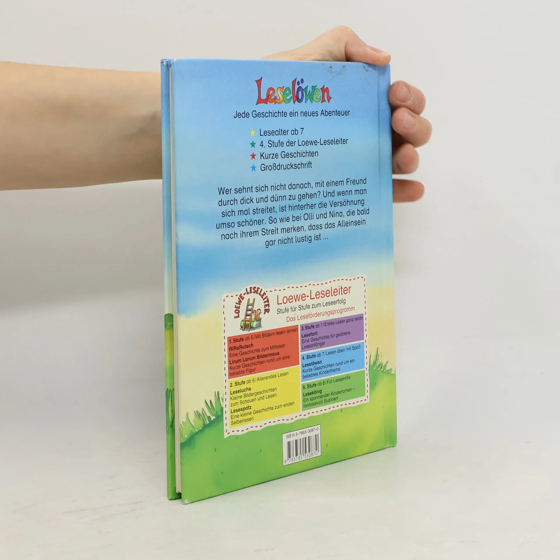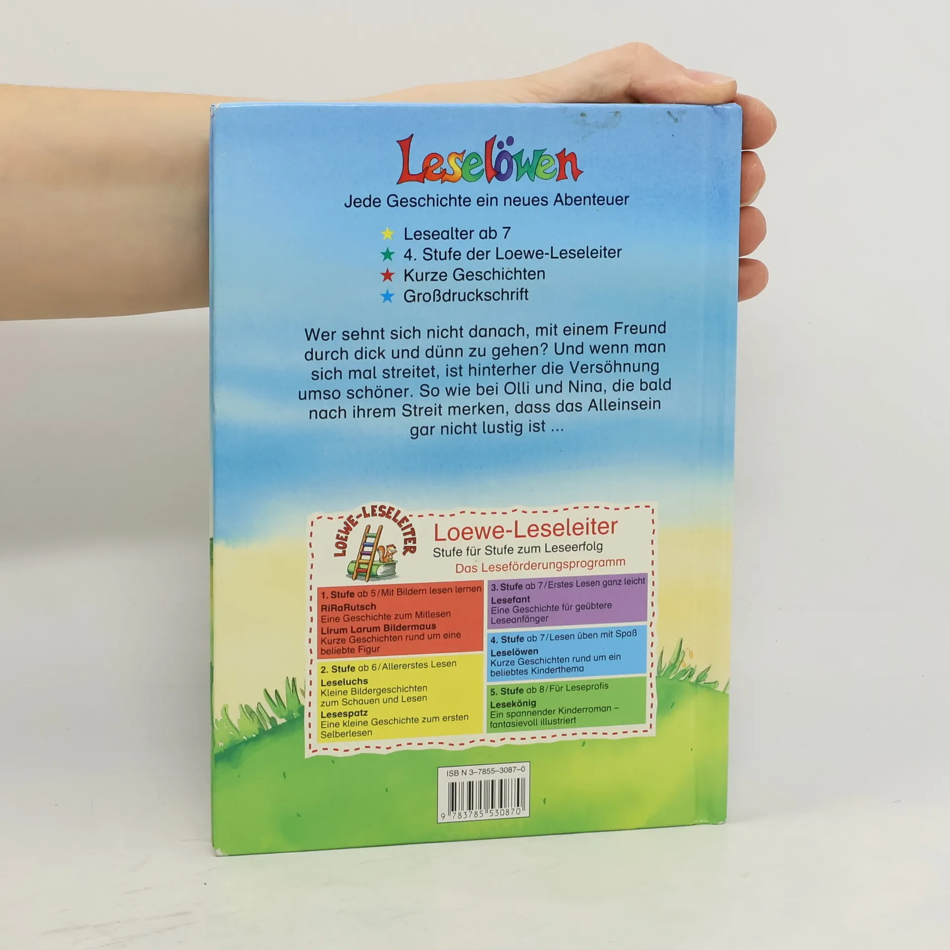 Lesealter ab 8 4. Stufe der Loewe-Leseleiter Kurze Geschichten Großdruckschrift Wer sehnt sich nicht danach mit einem Freund durch dick und dünn zu gehen? Und wenn man sich mal streitet, ist hinterher die Versöhnung umso schöner. So wie bei Olli und Nina, die bald nach ihrem Streit merken, dass das Alleinsein gar nicht lustig ist.