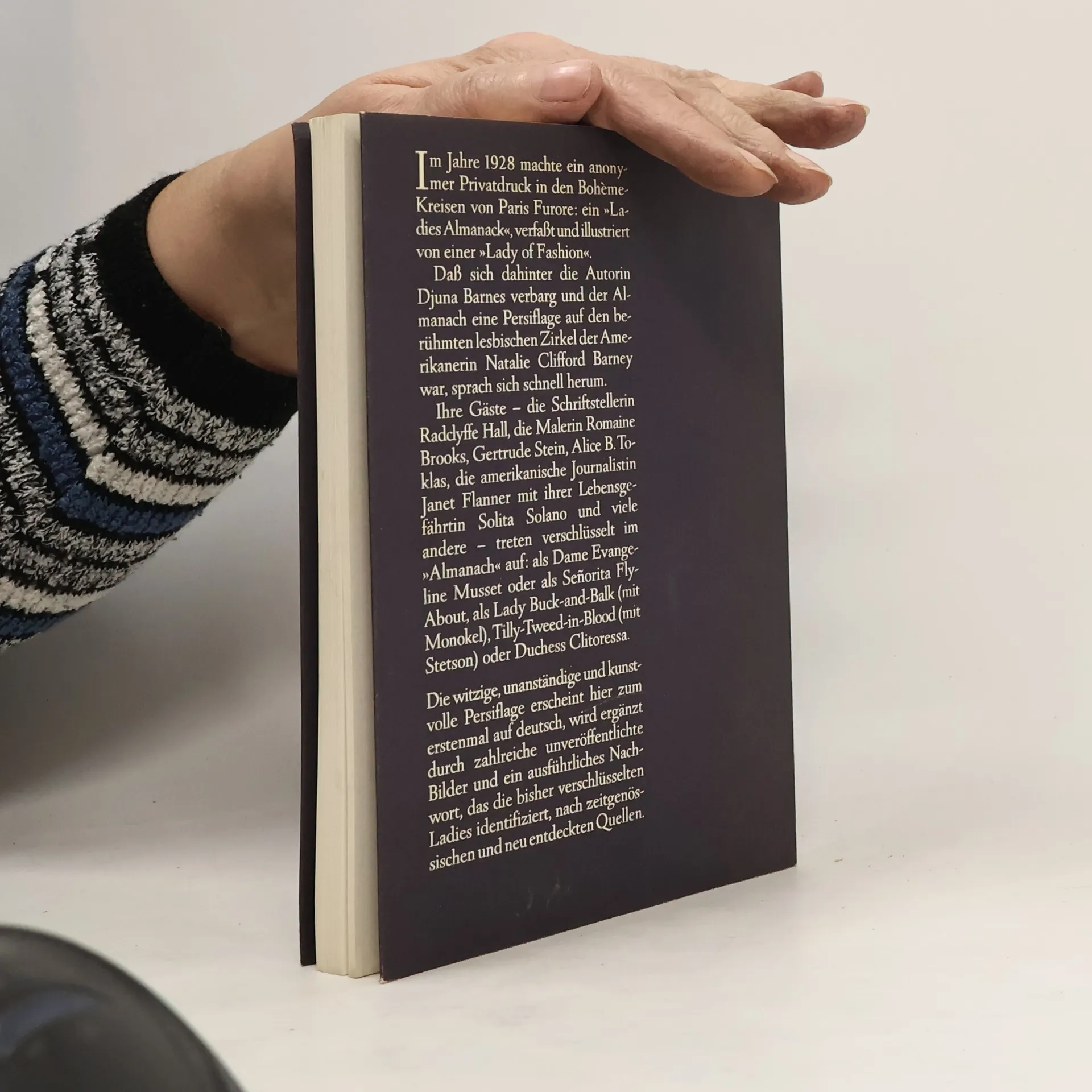 Der berühmte Almanach über »Sternzeichen, Monde und Jahreszeiten« eines ebenso berühmten lesbischen Zirkels, samt einem »vollständigen Bericht über tägliche und nächtliche Verwirrungen«. In den Bohème-Kreisen von Paris machte 1928 ein anonymer Privatdruck Furore: Hinter dem Pseudonym einer »Lady of Fashion« verbarg sich Djuna Barnes, der Almanach war eine Persiflage auf den berühmten lesbischen Zirkel von Nathalie Barney, in dem sich alle Berühmtheiten der Zeit versammelten, von Ezra Pound und James Joyce bis Romaine Brooks, Gertrude Stein und Janet Flanner. Sie alle traten verschlüsselt im Almanach auf, von Lady Buck-and-Bull bis Duchess Clitoressa – ein zu jeder Überschreitung gesellschaftlicher Regeln entschlossener Haufen von verwegenen und souveränen, abgedrehten und hochgebildeten Frauen. Ein ausführliches, reichbebildertes Nachwort entschlüsselt die Personen und die Umstände, nennt die Damen und die Namen.