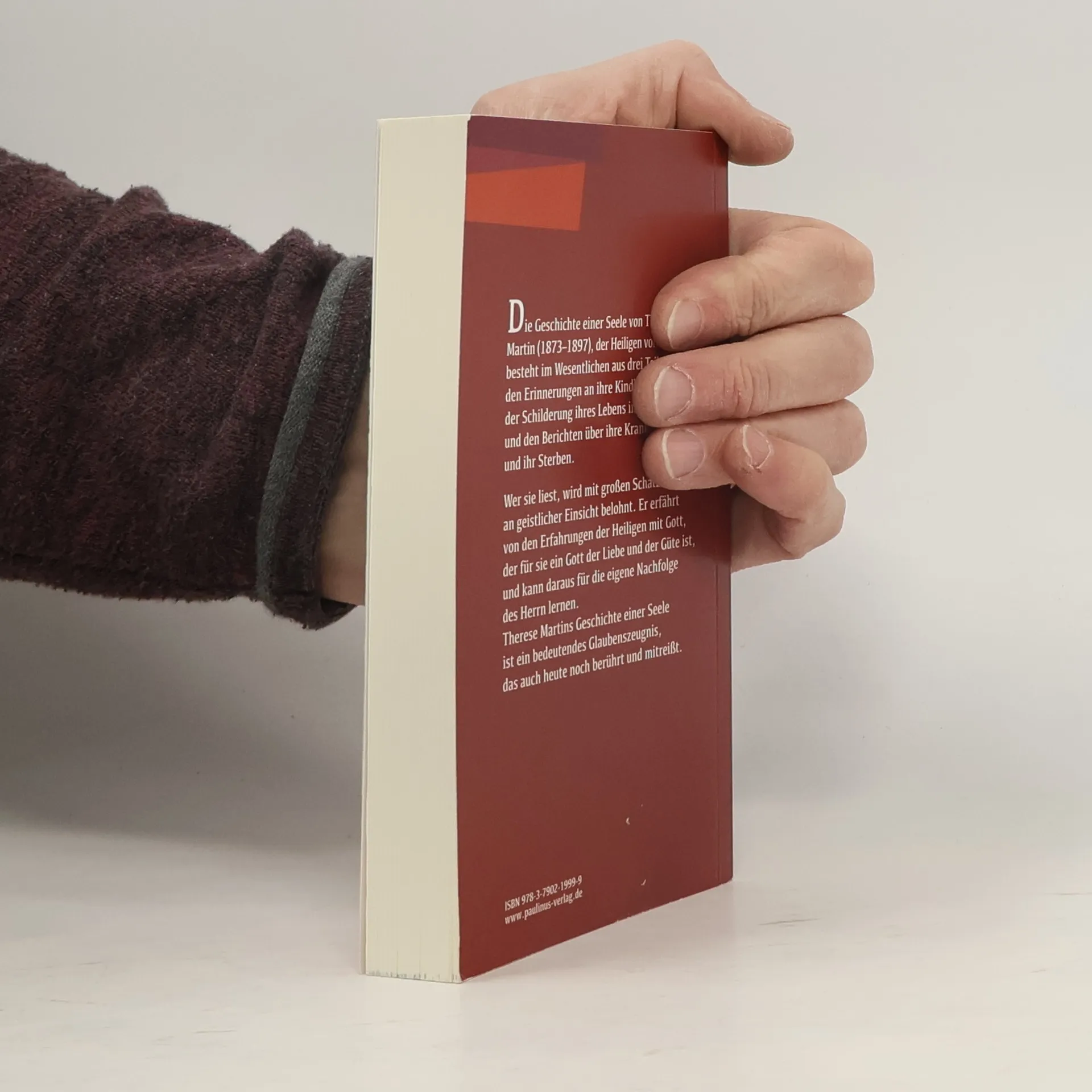 Die Geschichte einer Seele von Therese Martin (1873–1897), der Heiligen von Lisieux, besteht im Wesentlichen aus drei den Erinnerungen an ihre Kindheit, der Schilderung ihres Lebens im Kloster und den Berichten über ihre Krankheit und ihr Sterben. Wer sie liest, wird mit großen Schätzen an geistlicher Einsicht belohnt. Er erfährt von den Erfahrungen der Heiligen mit Gott, der für sie ein Gott der Liebe und der Güte ist, und kann daraus für die eigene Nachfolge des Herrn lernen. Therese Martins Geschichte einer Seele ist ein bedeutendes Glaubenszeugnis, das auch heute noch berührt und mitreißt.