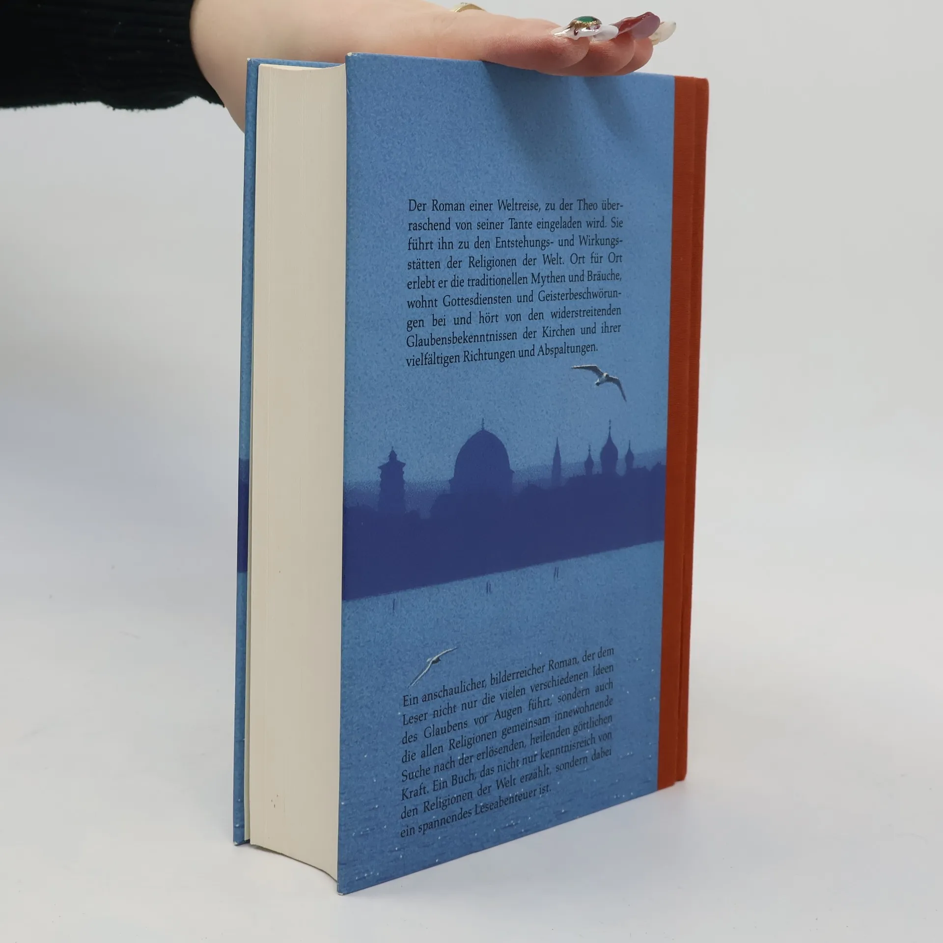 Theo ist vierzehn Jahre alt. Seine größte Leidenschaft sind Bücher über alte Mythologien und Computerspiele. Als Theo erfährt, dass er schwer krank ist, nimmt ihn seine Tante Marthe mit auf eine große Reise. Er soll die Weltreligionen und ihre heiligen Stätten kennen lernen: Jerusalem, Ägypten, Rom, Istanbul, Moskau – Theo ist fasziniert und beeindruckt. Und überall trifft er auf kundige Religionsführer, die ihm die verschiedensten Glaubensrichtungen – vom Judentum über den Islam bis hin zum Buddhismus anschaulich nahe bringen. »Abenteuerroman und Enzyklpopädie, Entwicklungsroman und ein Stück farbenprächtige Reiseliteratur …amüsant, spannend und leicht zu lesen.« FOCUS