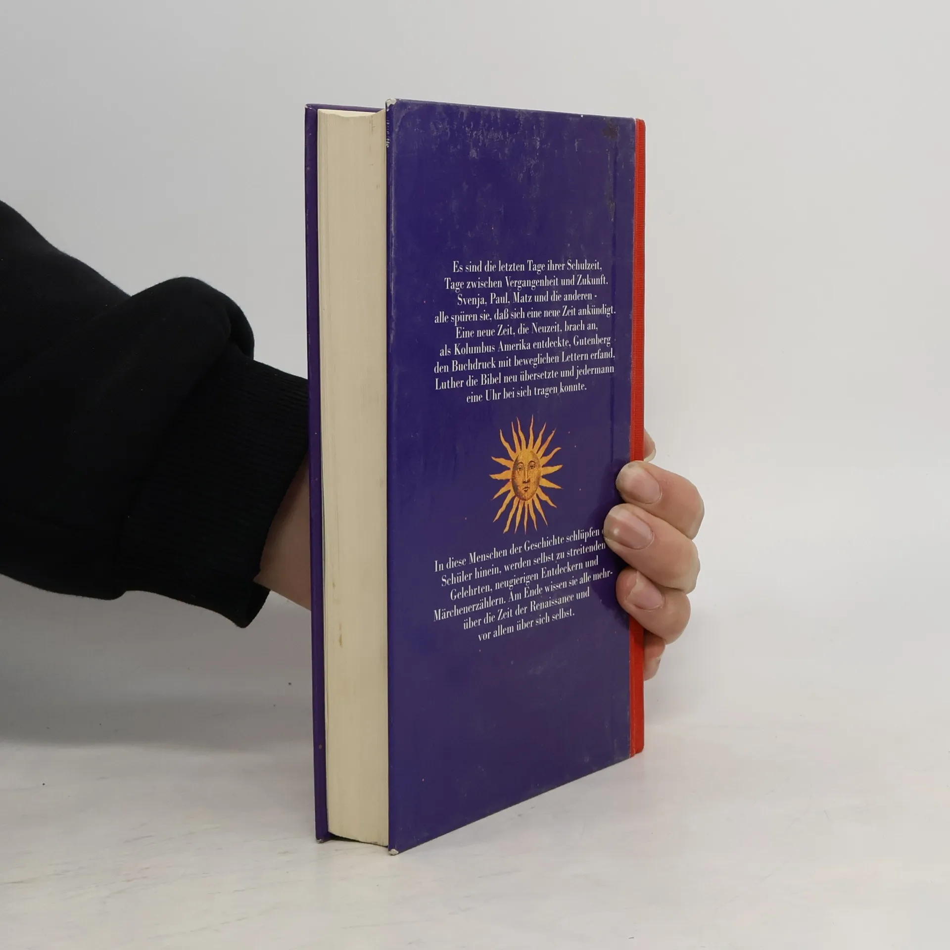 Es sind die letzten Tage ihrer Schulzeit, Tage zwischen Vergangenheit und Zukunft. Svenja, Paul, Matz und die aanderen - alle spüren sie, dass sich eine neue Zeit angekündigt. Eine neue Zeit, die Neuzeit, brach an, als Kolumbus Amerika entdeckte, Gutenberg den Buchdruck mit beweglichen Lettern erfand, Luther die Bibel neu übersetzte und jedermann eine Uhr bei sich tragen konnte. In diese Menschen der Geschichte schlüpfen die Schüler hinein, werden selbst zu streitenden Gelehrten, neugierigen Entdeckern und Märchenerzählern. Am Ende wissen sie alle mehr über die Zeit der Renaissance und vor allem über sich selbst.