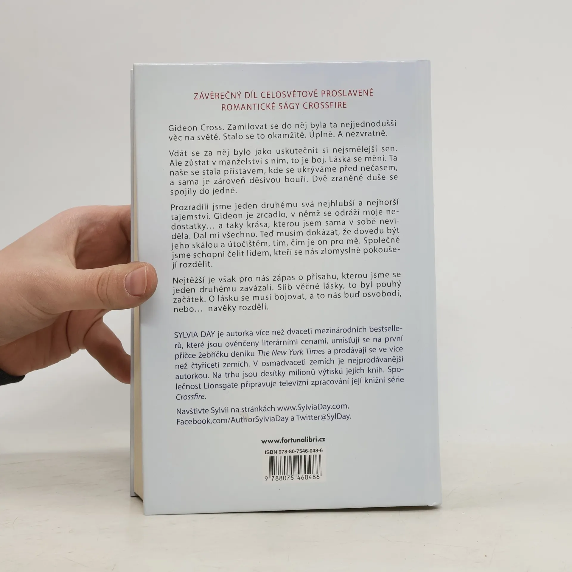Dvě zraněné duše se spojily do jedné ZÁVĚREČNÝ DÍL CELOSVĚTOVĚ PROSLAVENÉ ROMANTICKÉ SÁGY CROSSFIRE Gideon Cross. Zamilovat se do něj byla ta nejjednodušší věc na světě. Stalo se to okamžitě. Úplně. A nezvratně. Vdát se za něj bylo jako uskutečnit si nejsmělejší sen. Ale zůstat v manželství s ním, to je boj. Láska se mění. Ta naše se stala přístavem, kde se ukrýváme před nečasem, a sama je zároveň děsivou bouří. Dvě zraněné duše se spojily do jedné. Prozradili jsme jeden druhému svá nejhlubší a nejhorší tajemství. Gideon je zrcadlo, v němž se odráží moje nedostatky… a taky krása, kterou jsem sama v sobě neviděla. Dal mi všechno. Teď musím dokázat, že dovedu být jeho skálou a útočištěm, tím, čím je on pro mě. Společně jsme schopni čelit lidem, kteří se nás zlomyslně pokoušejí rozdělit. Nejtěžší je však pro nás zápas o přísahu, kterou jsme se jeden druhému zavázali. Slib věčné lásky, to byl pouhý začátek. O lásku se musí bojovat, a to nás buď osvobodí, nebo… navěky rozdělí.