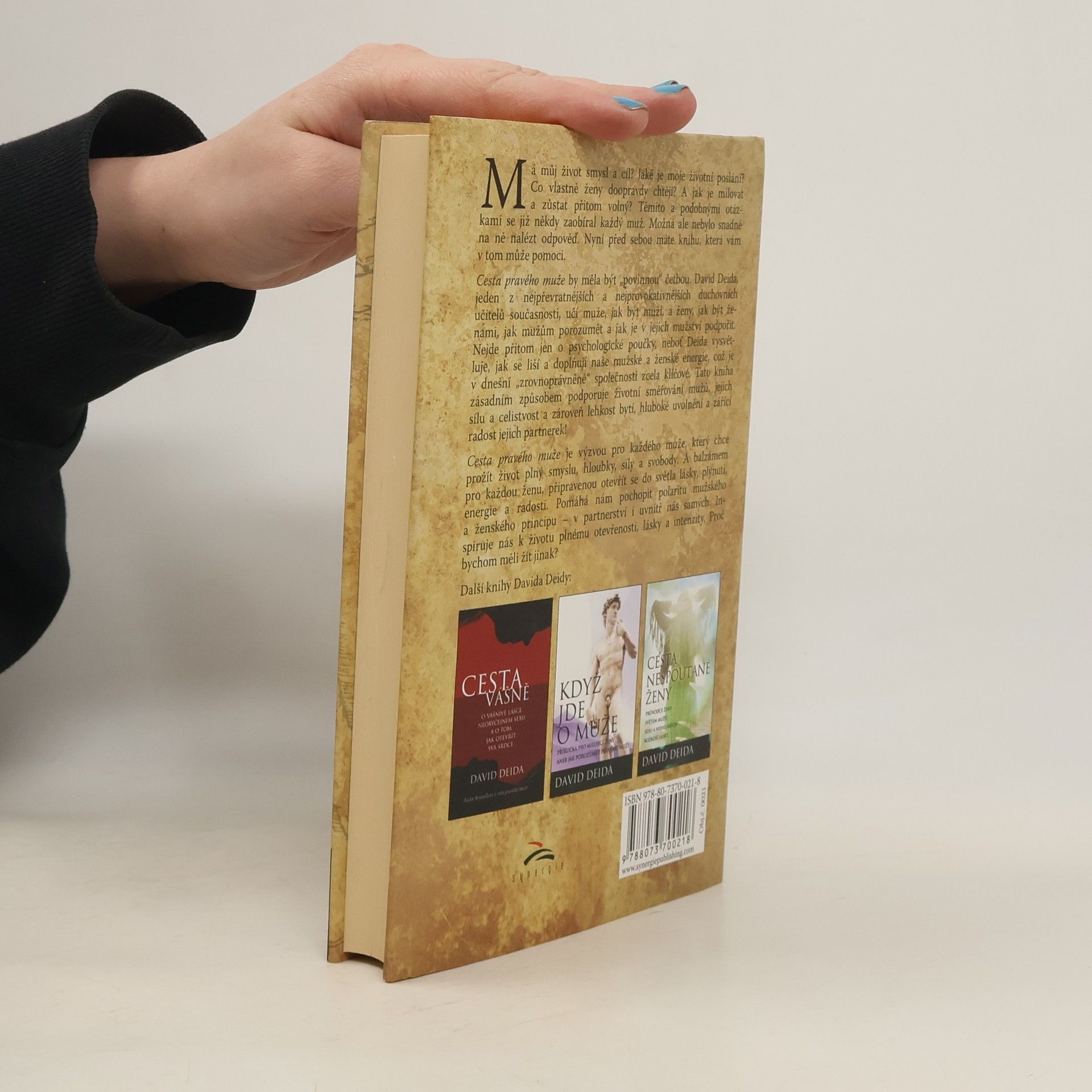 Jaké je vaše nejhlubší životní poslání? Co doopravdy ženy chtějí? Jak se stát skvělým milencem? Pokud čtete tyto otázky a jste muž, určitě jste si již tyto a podobné otázky pokládali. Možná ale nebylo snadné na ně nalézt odpověď. Cesta pravého muže vás zavede do srdce současné mužské zkušenosti. David Deida se zde s pronikavou upřímností a ojedinělým vhledem do nejhlubších mužských tužeb zabývá nejdůležitějšími aspekty života mužů - kariérou a rodinou počínaje a ženami, intimitou, láskou a duchovním růstem konče. Nabízí vám praktickou příručku jak žít Cesta pravého muže by se měla být povinnou "školní" četbou. Deida učí muže, jak být muži, a ženy, jak být ženami. Jak se navzájem obdarovat tím, čím jsme jedineční, a porozumět tomu, kde jsme odlišní. Nejde přitom jen o psychologické poučky - Deida vysvětluje, jak se liší a doplňují naše mužské a ženské energie, což je v dnešní "zrovnoprávněné" společnosti zcela klíčové. Tato kniha zásadním způsobem podporuje životní směřování mužů, jejich sílu a celistvost, a zároveň lehkost bytí, hluboké uvolnění a zářící radost jejich partnerek!