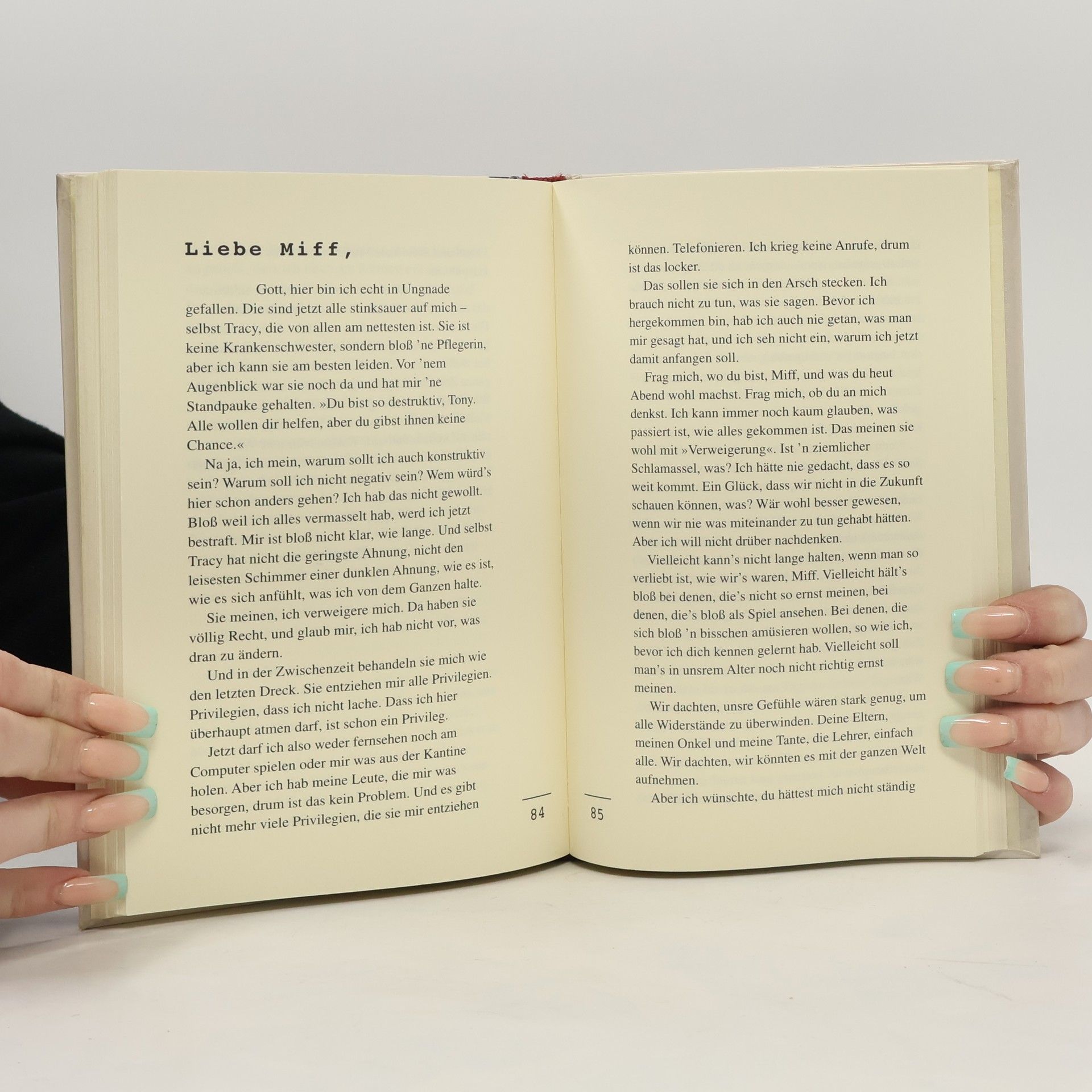 Vor vier Jahren verschwand die Mutter, und damit begann das ganze Unglück. Danach ist Tony zu einem richtigen Underdog geworden, vom Pech verfolgt. Nachdem auch noch die Beziehung zu Miffy ein jähes Ende gefunden hat, möchte er nur noch eines, allem so schnell wie möglich ein Ende setzen... Seitdem ist Tony an den Rollstuhl gefesselt. In Briefen versucht er, sich zu erinnern und das Geschehene zu reflektieren.