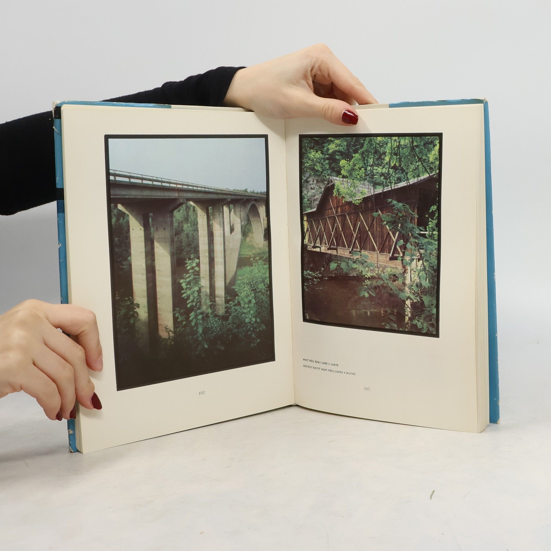Mosty charakterizující stavitelské umění minulosti a současnosti: Bechyně, Beroun, Bělá nad Radbuzou, Bílina, Bítov, Blatná, Bouzov, Brandýs nad Labem, Bratislava, Brno, Brtnice, Bystrá nad Jizerou, Černvír, Čertův most, Červená Lhota, Červená nad Vltavou, Český Krumlov, Děčín, Dobřany,Dobřív, Dolní Loučky, Havlovice, Holíč, Holkov, Horní Nerestce, Hořepník, Hostěrádky, Hradec Králové, Hronec, Hvězdonice, Cheb, Ivančice, Jezernice, Kačina, Kluknava, Kočí-Topol, Kolín, Komárno, Kráľová, Křinec, Lednice, Lenora, Litovel, Loket, Louny, Lysice, Milotice, Miřejovice, Náměšť nad Oslavou, Němčice, Nové Město nad Metují, Obříství, Ostrava, Pardubice, Peklo nad Zdobnicí, Pernštejn, Piešťany, Písek, Píšť, Podolsko, Podtureň, Poltár, Praha, Most Juditin, Karlův most, Most Prvního máje, Negrelliho viaddukt, Most Svatopluka Čecha, Hlávkův most, Most Klementa Gottwalda, Pravčická brána, Přibyslav, Ronov, Putim, Rabštejn, Radošov, Sedlnice-Studénka, Sekule, Sereď, Slovenský ráj, Stádlec, Stará Hlína, Stránov, Krnsko, Stříbro, Suchovršice, Sychrov, Štěchovice, Švařec, Tábor, Valdštejn, Vejprnice, Velhartice, Velké Meziříčí, Veltrusy, Verdek, Vlašim, Žampach, Ždákov. 80 kreseb, 100 mapek, 60 fotografií, 24 barevných obrázků. 31-003-84