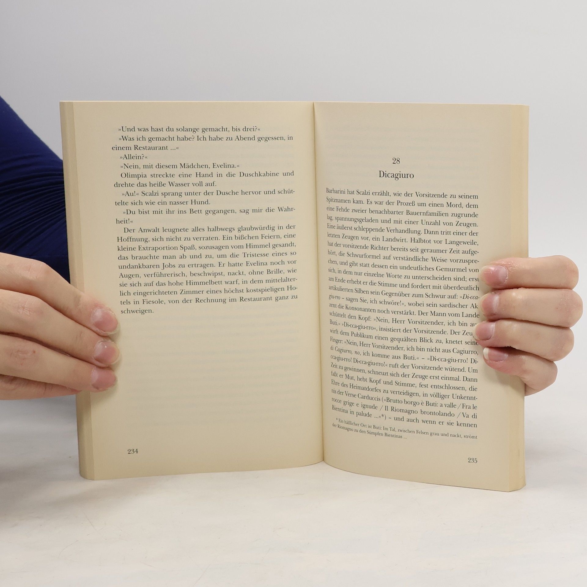 Pisa, Anfang der 70er Jahre. Der Wirt einer heruntergekommenen Trattoria wird ermordet aufgefunden. Die Schuldigen scheinen schnell ausgemacht: Witwe und Tochter des Ermordeten sollen sich des krankhaft eifersüchtigen Trunkenbolds entledigt haben. Doch der Florentiner Anwalt Corrado Scalzi, der die Verteidigung der beiden Frauen übernommen hat, ist von ihrer Unschuld überzeugt. Zu viele Lücken in der Beweisaufnahme, zu viele Unstimmigkeiten deuten darauf hin, daß die Frauen geopfert werden sollen, um kriminelle Machenschaften weit größeren Ausmaßes zu vertuschen. Der Leser darf sich darauf freuen, einem ungleichen Paar wiederzubegegnen -Scalzi, dem „melancholischen Aufklärer“ (FAZ), mit einem Faible für die toskanische Küche, und seiner lebhaften Begleiterin Olimpia, deren Intuition seiner Erkenntnis nicht selten eine Nasenlänge voraus ist. „Ein hervorragender Krimi, der nicht nur auf Spannung, sondern auch auf der psychologischen Wetterlage der urigen Hauptfiguren aufgebaut ist. Natürlich mit der gebührenden Portion toskanischer Nonchalance.“ Ex Libris/WOXX „Filastòs Können besteht darin, egal ob es sich um Mafia-Intrigen, um Morde an Transsexuellen oder um Kunstfälschungen handelt, seine Texte nicht nur mit den unabdingbaren Spannungselementen auszustatten, sondern gleichzeitig einen subtilen Blick auf die menschlichen und gesellschaftlichen Verhältnisse Italiens zu werfen.“ Hamburger Abendblatt