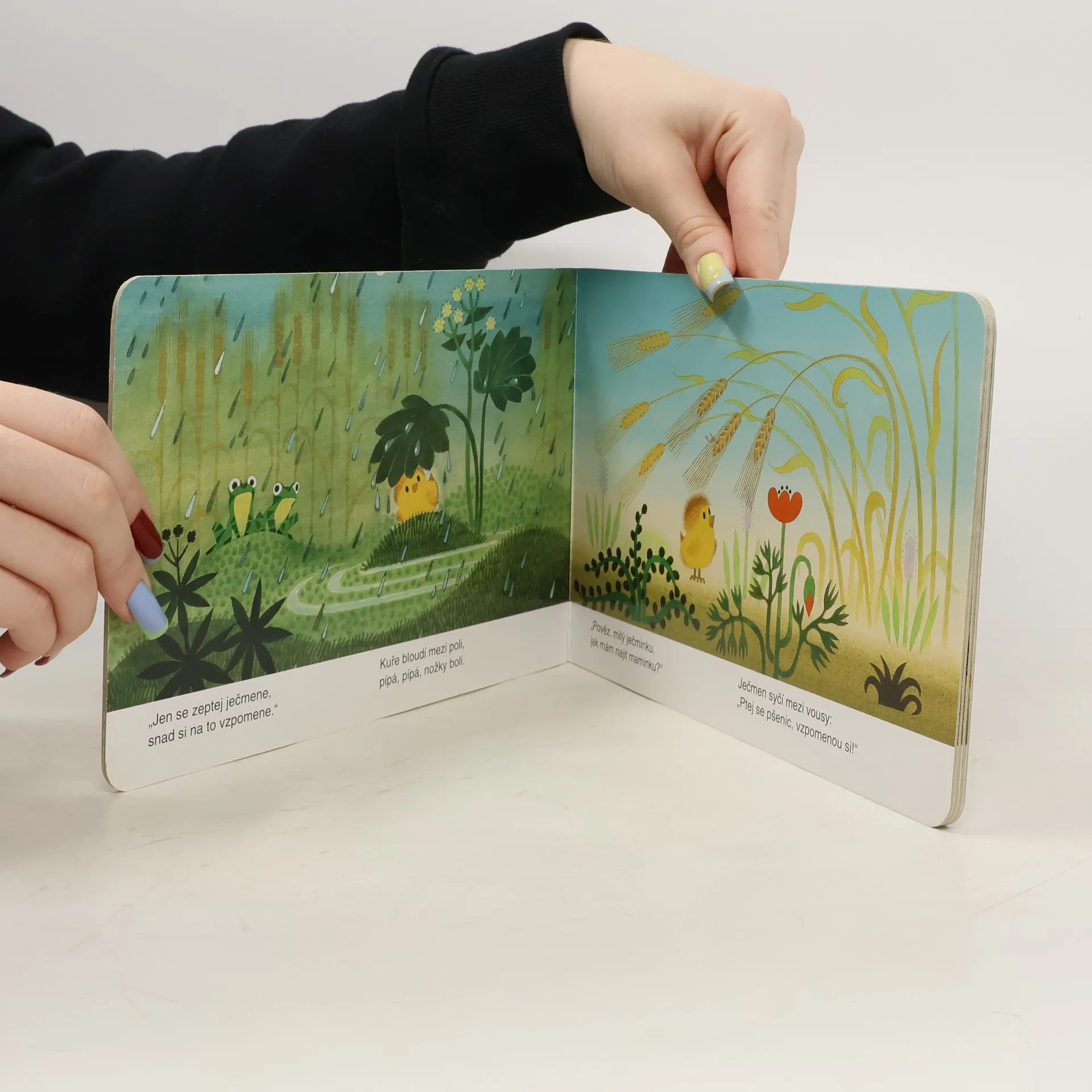 Krátká veršovaná pohádka s barevnými obrázky o malém kuřátku, které se ztratilo v poli a vyptává se obilí na cestu domů. - Pohádka učí nejmenší děti rozeznávat různé druhy obilí.