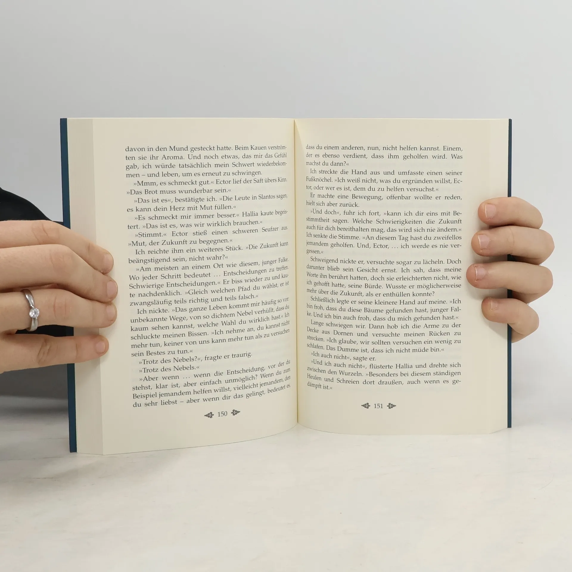 Merlin übt seine Zauberkünste. Ein misslungener Springzauber versetzt ihn und Hallia ins verhexte Moor, wo Merlins Schwert von einem Vogel entführt wird. Bei ihrer Suche treffen sie auf einen jungen Mann, Ector. Merlin droht der tödlichen Verletzung eines Killerkäfers zu erliegen. Heilung kann nur der magische Schlüssel bringen, eines der sieben weisen Werkzeuge Fincayras. Als sie ihn nach zahllosen Abenteuern gefunden haben, erscheint Merlins alte Gegenspielerin Nimue: Schlüssel gegen Schwert, lautet ihr Angebot. Merlin setzt den Schlüssel jedoch ein, um den Zauber zu brechen, den sie über die Moorghule verhängt hat. Das Schwert steckt fest in einem Stein, nur Ector kann es herauszuziehen. Er gesteht, dass er aus einer anderen Zeit stammt, und verspricht, Merlin durch den Zeitspiegel nach Gramarye zu seinem Meister zu bringen, der ihn wird heilen können. Die wallenden Zeitnebel bringen sie zu Ectors Meister, der zu Merlins Verblüffung denselben Namen trägt wie er: Merlin steht sich selbst gegenüber! Und Ectors richtiger Name ist Artus … Ein Festmahl zu dritt krönt das ungewöhnliche Zusammentreffen. Auf dem Weg zurück durch die Zeitnebel wird Merlin klar, dass sein wahres Bild in ihm selbst liegt. Er hat den »Spiegel, der kein Licht braucht« entdeckt. Auch der vierte Teil der Merlin-Saga ist voller Leidenschaft und Tiefgründigkeit und bereichert die Legende um eine faszinierende neue Dimension.