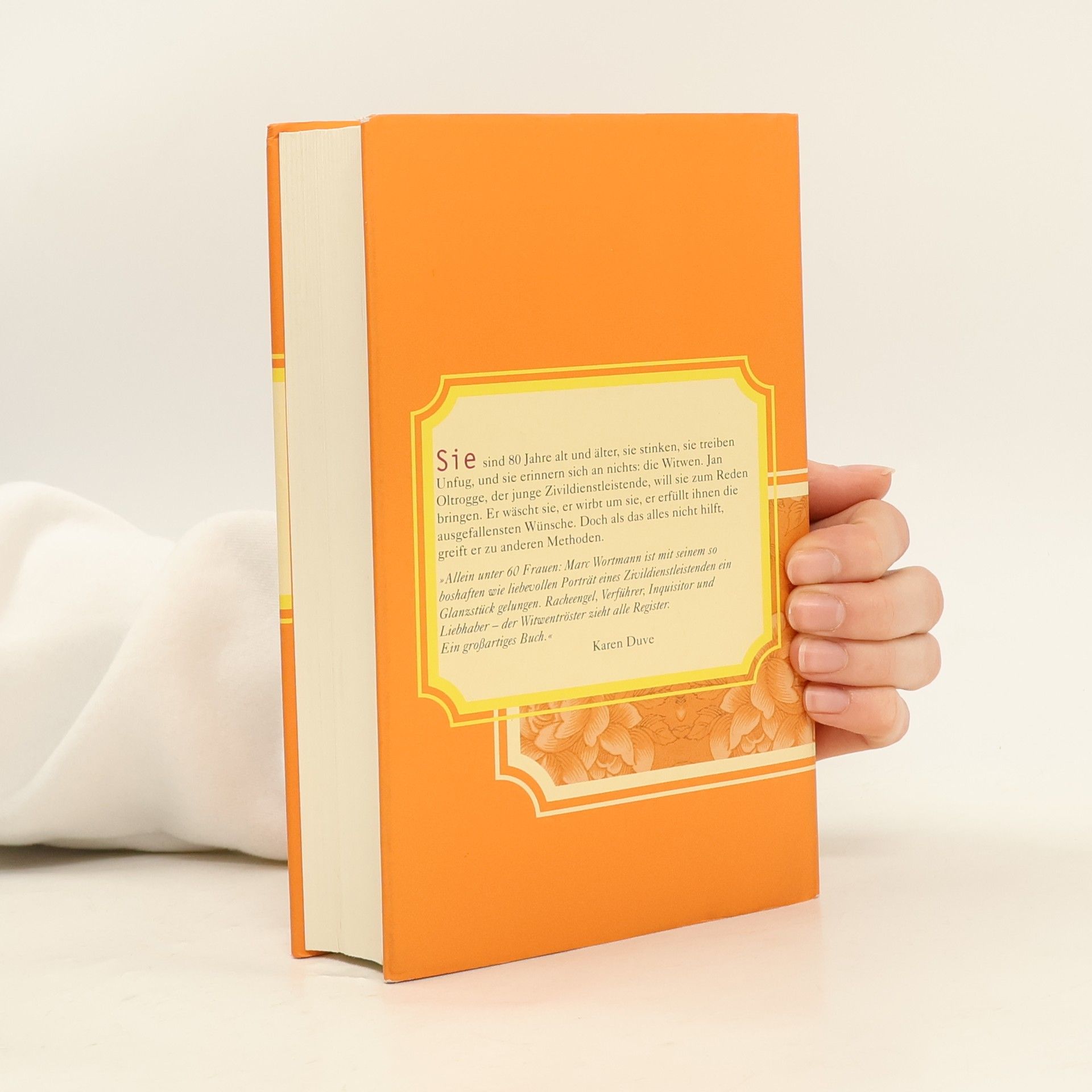 Allein unter 60 Frauen – der Witwentröster Sie sind 80 Jahre alt und älter, sie stinken, sie treiben Unfug, und sie erinnern sich an nichts: die Witwen. Jan Oltrogge, der junge Zivildienstleistende, will sie zum Reden bringen. Er wäscht sie, er wirbt um sie, er erfüllt ihnen die ausgefallensten Wünsche. Doch als das alles nicht hilft, greift er zu anderen Methoden. Kein Ort, an dem man Abenteuer erwartet: die Luisenstiftung, ein Frauen-Altersheim in Altona. Aber was Jan Oltrogge, der Witwentröster, zu erzählen hat, ist außergewöhnlich und spannend: seine besessene Suche nach dem Geheimnis der Witwen. Seine Diagnosen sind fragwürdig, seine Maßnahmen sind drastisch und stehen quer zu allen Pflegeplänen. Und natürlich stößt er auf Widerstand: Die Schwestern sitzen ihm im Nacken und pochen auf Erfüllung des Arbeitspensums, die Angehörigen benutzen ihn, um ihr schlechtes Gewissen zu beruhigen. Ganz auf sich gestellt, verfolgt Jan sein geheimes Programm. Bald zeigen sich die ersten Erfolge: Die Witwen beginnen, sich zu erinnern – und wieder zu leben. Doch dann kommt das Sommerfest, und Jan verliert die Kontrolle über das Geschehen. Marc Wortmanns eindrucksvolles Romandebüt erzählt drastisch und unterhaltsam von einer Generation, die nicht ohne Grund vergesslich geworden ist, und von einem Helden, der die Geister nicht mehr loswird, die er rief.