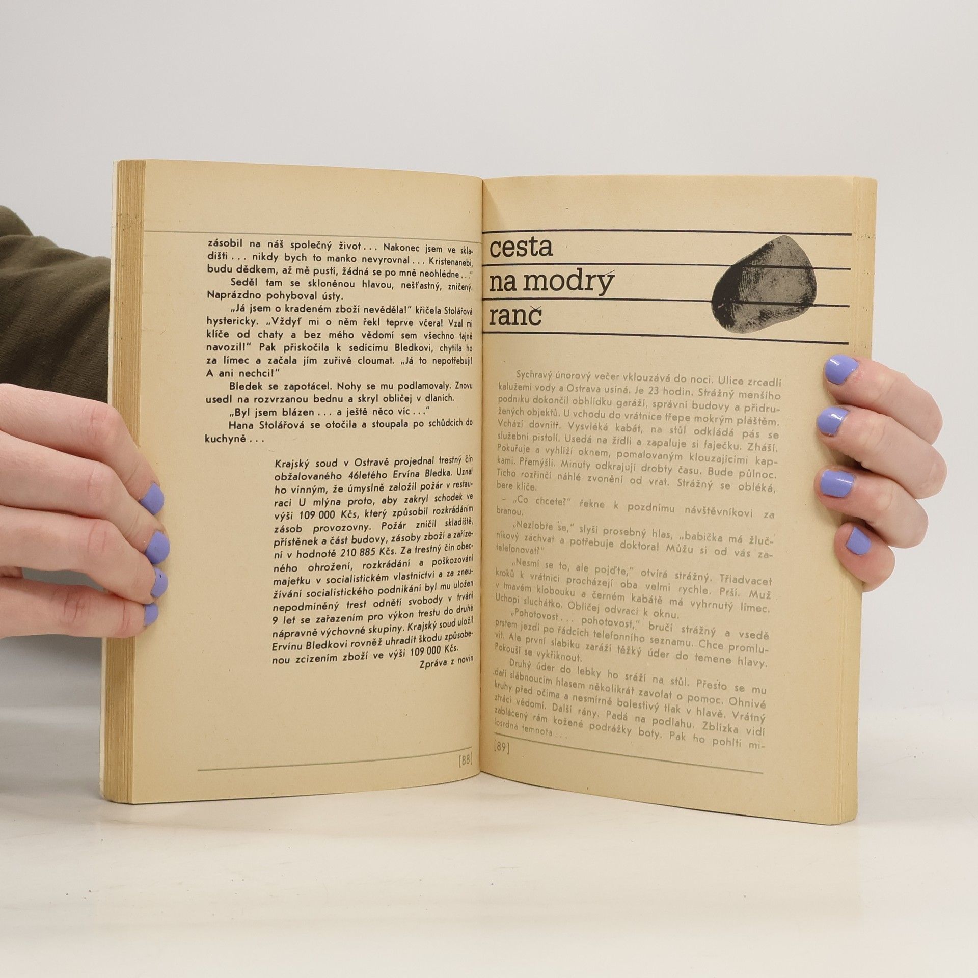 Kriminální povídky. Všechny popisované případy se přihodily v okolí Ostravy.Od krádeže vloupáním až po chladnou vraždu, to je tematický rozsah kriminálních povídek Jaroslava Netoličky. A mezi těmito trestnými činy se odehrává řada dalších desíti příběhů, jejichž společným jmenovatelem je lidská slabost, touha po bezpracném životě, cynismus ve vztahu k druhým, zneužití milostného citu osamělých žen, velikášství a především lidská lhostejnost, umožňující lidem z Netoličkových povídek žít na konto jiných.Všechny příběhy z této knížky se staly na území jednoho velkého průmyslového města, všemi se zabývaly bezpečnostní orgány a všichni pachatelé byli dopadeni. Znamená to tedy, že druhou linií Netoličkových próz je obraz každodenní práce Bezpečnosti, obraz důsledného ohledávání stop, objasňování motivů, prověřování stovek indicií, vedoucích nakonec k cíli: ochraně společnosti, jejímiž jsme všichni členy.Seznam povídek:Doktor má alibiVdovec z EfesuJedenáctka se třemi náhradníkyDocela obyčejný případCesta na modrý rančPoznání nad remingtonkouGeniální krádežKuřátko přináší smůluVlak měl minutu zpožděníPříliš tajné kontoHochštaplerKobra se zelenýma očima