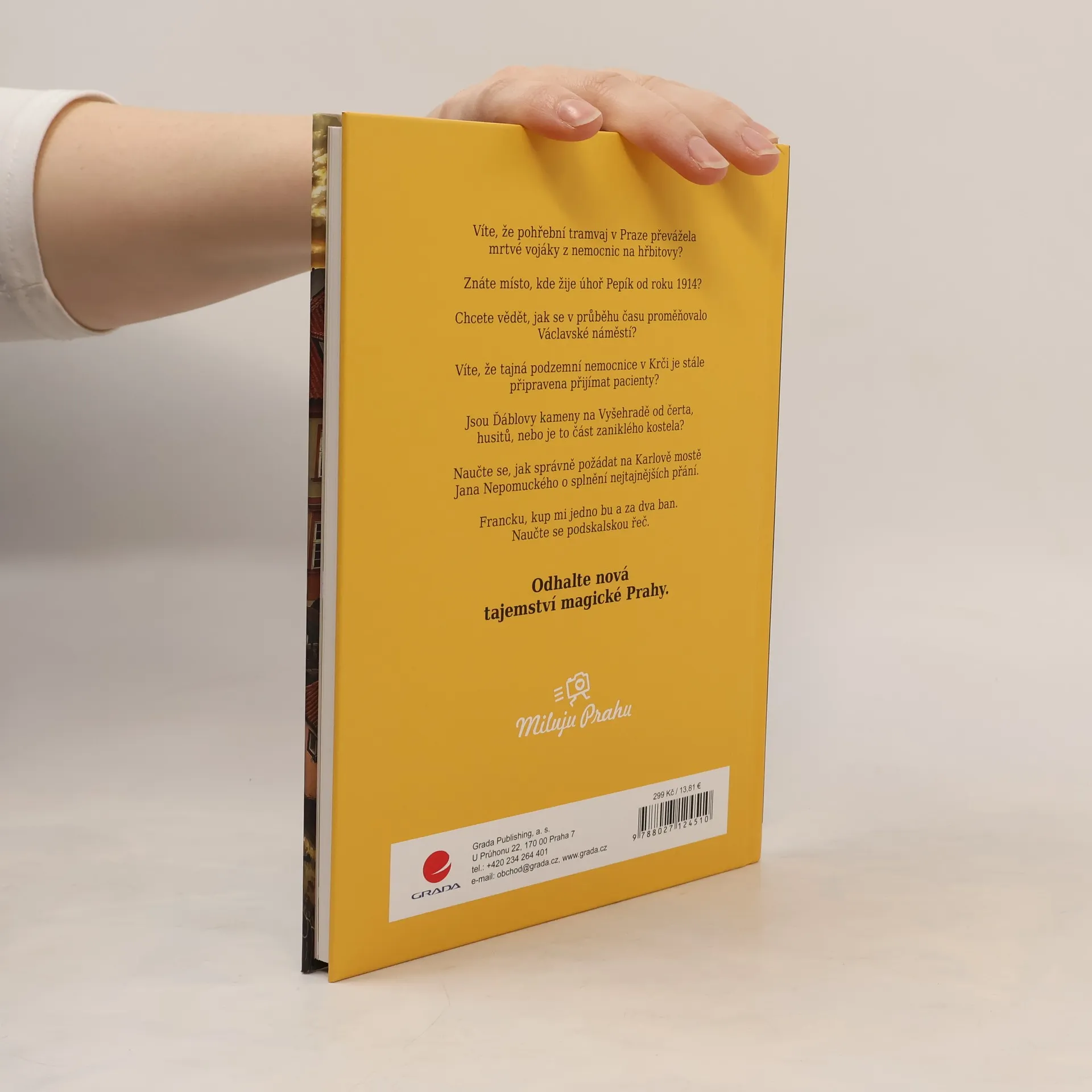 Odhalte nová tajemství magické Prahy! Praha je nejen stověžatá, ale také plná tajemství a zázraků. Autor David Černý v nové knize odhalí další zajímavosti z naší metropole. Projeďte se spolu s ním pohřební pražskou tramvají. Najděte první dopravní značku v Praze a seznamte se s úhořem Pepíkem, který už dlouhá léta žije v kašně pojišťovny ve Spálené ulici. Můžete také nahlédnout do koupelny Jana Masaryka a do podzemní nemocnice v Krči. Naučíte se, jak správně požádat o zázrak u sochy Jana Nepomuckého na Karlově mostě. Dozvíte se také, kde hledat ďáblovy kameny. Další nebudeme prozrazovat, ale můžete se těšit na Nová tajemství Prahy. Kniha je pokračováním knihy 25 tajemství Prahy, která vyšla v roce 2018 a stala se bestsellerem. Novinář, historik a fotograf, autor knihy 25 tajemství Prahy a Nová tajemství Prahy, tvůrce projektu Miluju Prahu David Černý pochází ze staré pražské pekařské rodiny. Studoval historii a celý život o Praze píše. Svou lásku k hlavnímu městu chtěl však sdílet i s ostatními, a tak si založil stránku Miluju Prahu. Zpočátku publikoval jen své oblíbené fotky Prahy, stránka se však rozrostla už na 100 tisíc fanoušků a spousty lidí dnes nadšeně posílají své vlastní fotky. David stále žije na Starém Městě nedaleko Staroměstského náměstí.