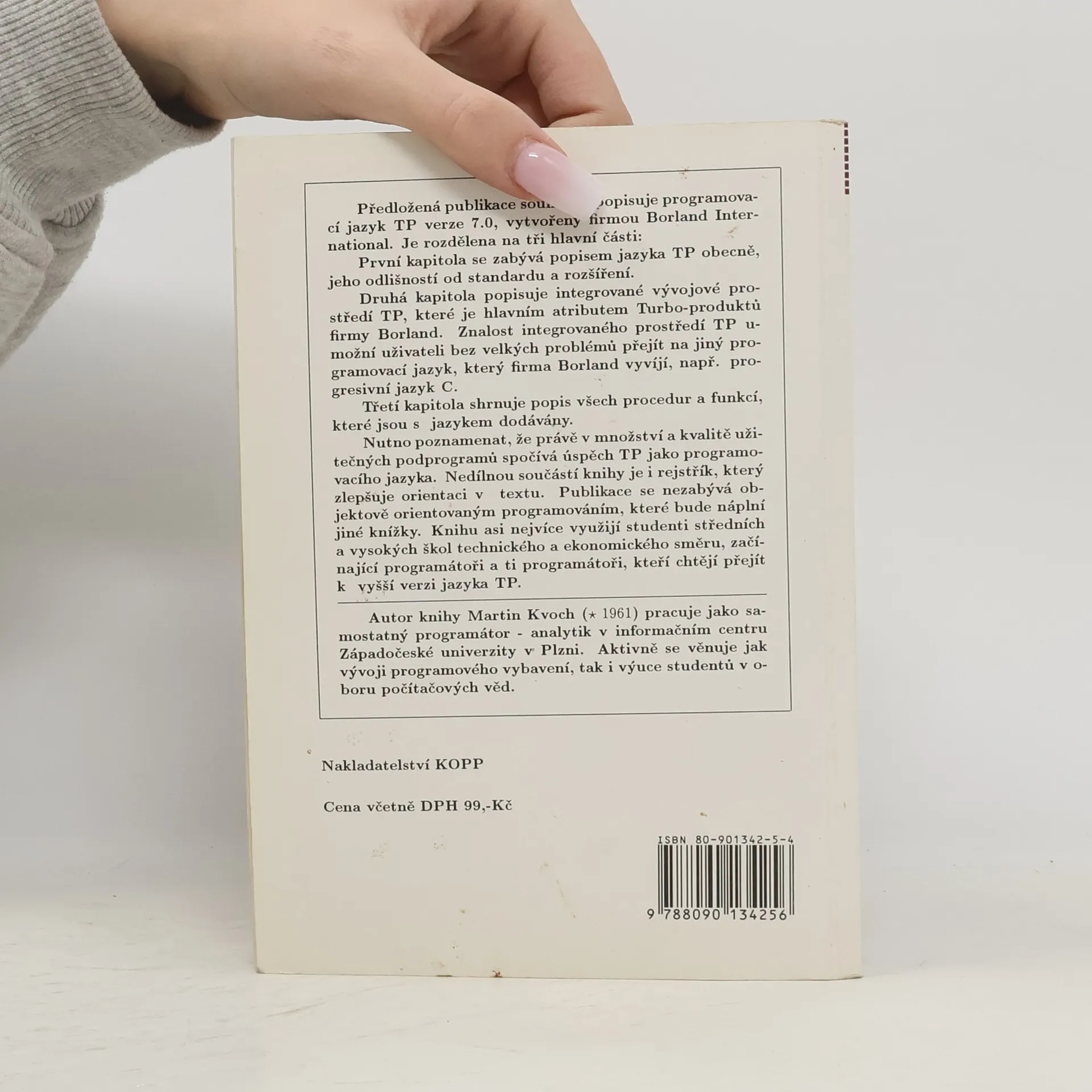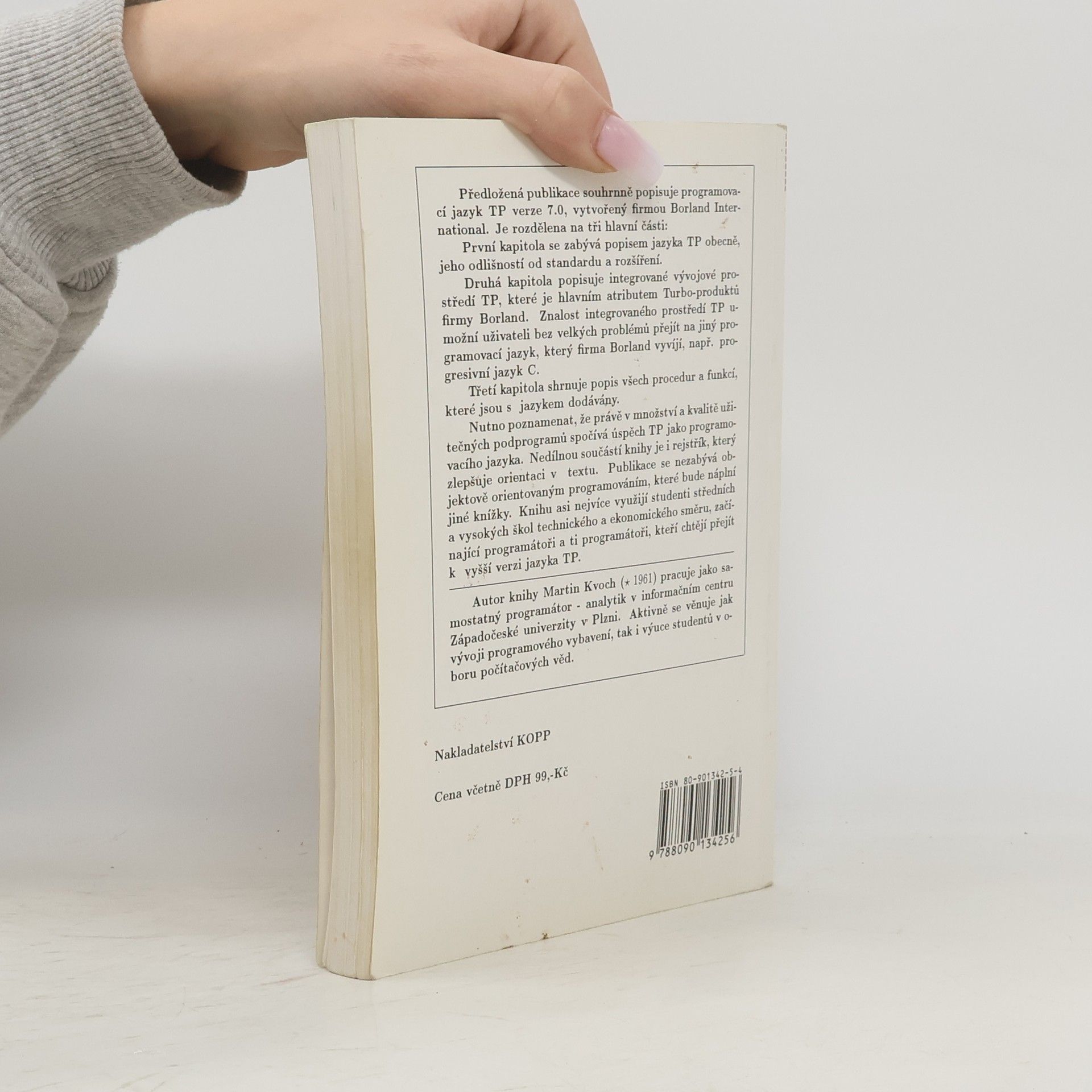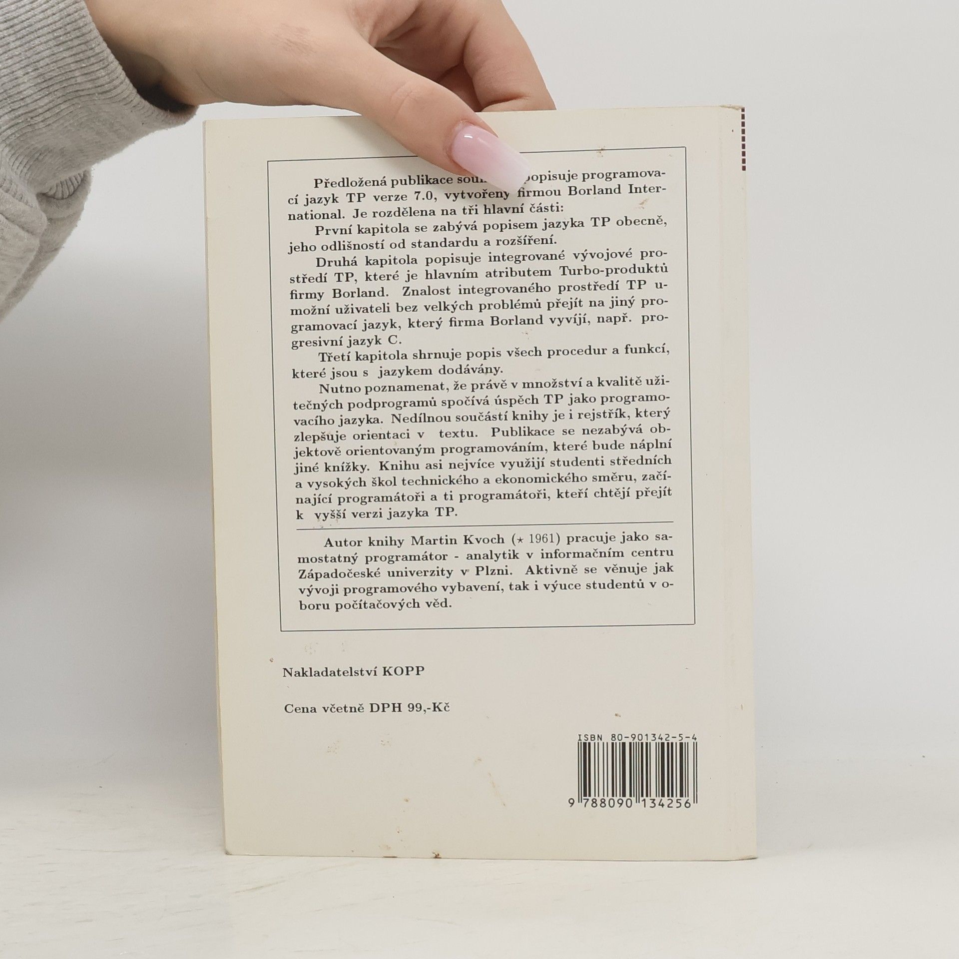 Předložená publikace souhrnně popisuje programovací jazyk TP verze 7.0, vytvořený firmou Borland International. Je rozdělena na tři hlavní části: První kapitola se zabývá popisem jazyka TP obecně, jeho odlišností od standardu a rozšíření. Druhá kapitola popisuje integrované vývojové prostředí TP, které je hlavním atributem Turbo-produktů firmy Borland. Znalost integrovaného prostředí TP umožní uživateli bez velkých problémů přejít na jiný programovací jazyk, vyvinutý firmou Borland, např. progresivní jazyk C. Třetí kapitola shrnuje popis všech procedur a funkcí, které jsou s jazykem dodávány. Nutno poznamenat, že právě v množství a kvalitě užitečných podprogramů spočívá úspěch TP jako programovacího jazyka. Nedílnou součástí knihy je i rejstřík, který zlepšuje orientaci v textu. Publikace se nezabývá objektově orientovaným programováním. Knihu asi nejvíce využijí studenti středních a vysokých škol technického a ekonomického směru a začínající programátoři.