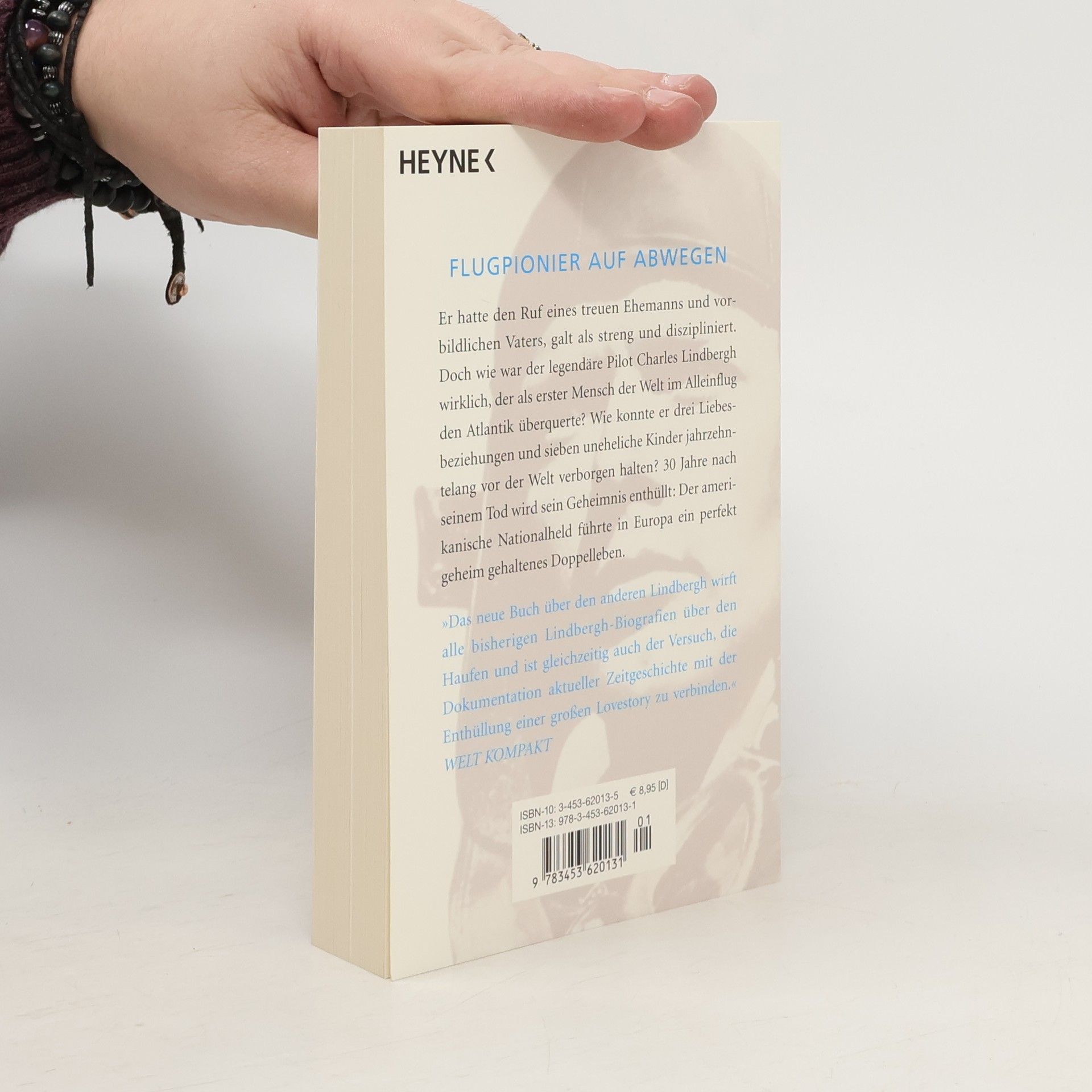 Er hatte den Ruf eines treuen Ehemanns und vorbildlichen Vaters, galt als streng und diszipliniert. Doch was ist wirklich über den legendären Piloten Charles Lindbergh bekannt, der als erster Mensch der Welt im Alleinflug den Atlantik überquerte? Wie konnte er drei Liebesbeziehungen und sieben uneheliche Kinder jahrzehntelang vor der Welt verborgen halten? Knapp 30 Jahre nach seinem Tod wird sein Geheimnis enthüllt: Der amerikanische Nationalheld führte in Europa ein perfekt geheim gehaltenes Doppelleben. „Das neue Buch über den anderen Lindbergh wirft alle bisherigen Lindbergh-Biografien über den Haufen und ist gleichzeitig auch der Versuch, die Dokumentation aktueller Zeitgeschichte mit der Enthüllung einer großen Lovestory zu verbinden.“ WELT KOMPAKT