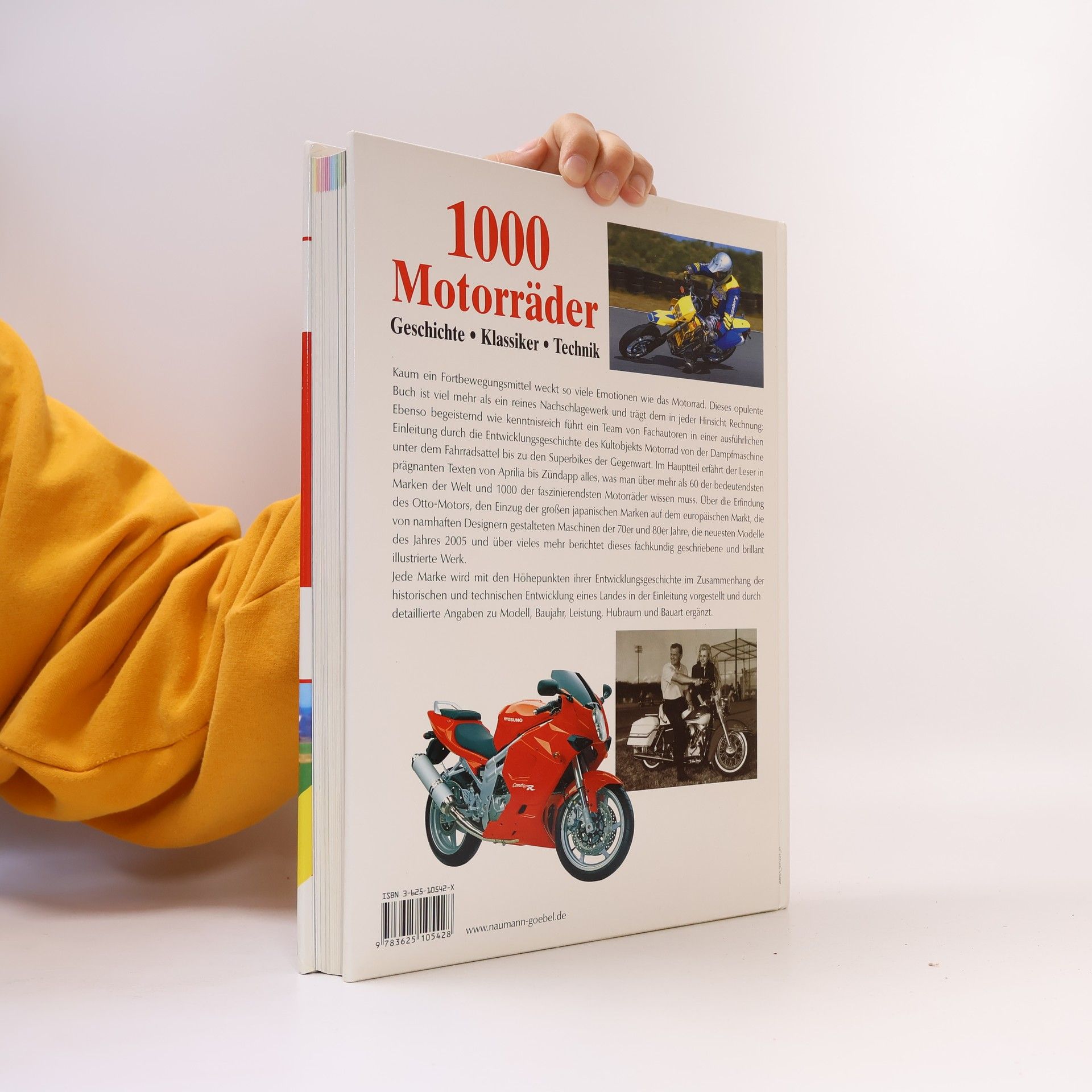 Kaum ein Fortbewegungsmittel weckt so viele Emotionen wie das Motorrad. Dieses opulente Buch ist viel mehr als ein reines Nachschlagewerk und trägt dem in jeder Hinsicht Rechnung: Ebenso begeisternd wie kenntnisreich führt ein von Fachautoren in einer ausführlichen Einleitung durch die Entwicklungsgeschichte des Kultobjekts Motorrad von der Dampfmaschine unter dem Fahrradsattel bis zu den achtzylindrigen Superbikes der Gegenwart. Im Hauptteil erfährt der Leser in prägnanten Texten von Aprilia bis Zündapp alles, was man über mehr als 60 der bedeutendsten Marken der Welt und 1000 der faszinierendsten Motorräder wissen muss. Über die Erfindung des Otto-Motors, den Einzug der großen japanischen Marken auf dem europäischen Markt, die von namhaften Designern gestalteten Maschinen der 70er und 80er Jahre, die neuesten Modelle des Jahres 2005 und über vieles mehr berichtet dieses fachkundig geschriebene und brillante Werk. Jede Marke wird mit den Höhepunkten ihrer Entwicklungsgeschichte im Zusammenhang der historischen und technischen Entwicklung eines Landes in der Einleitung vorgestellt und durch detaillierte Angaben zu Modell, Baujahr, Leistung, Hubraum und Bauart ergänzt.