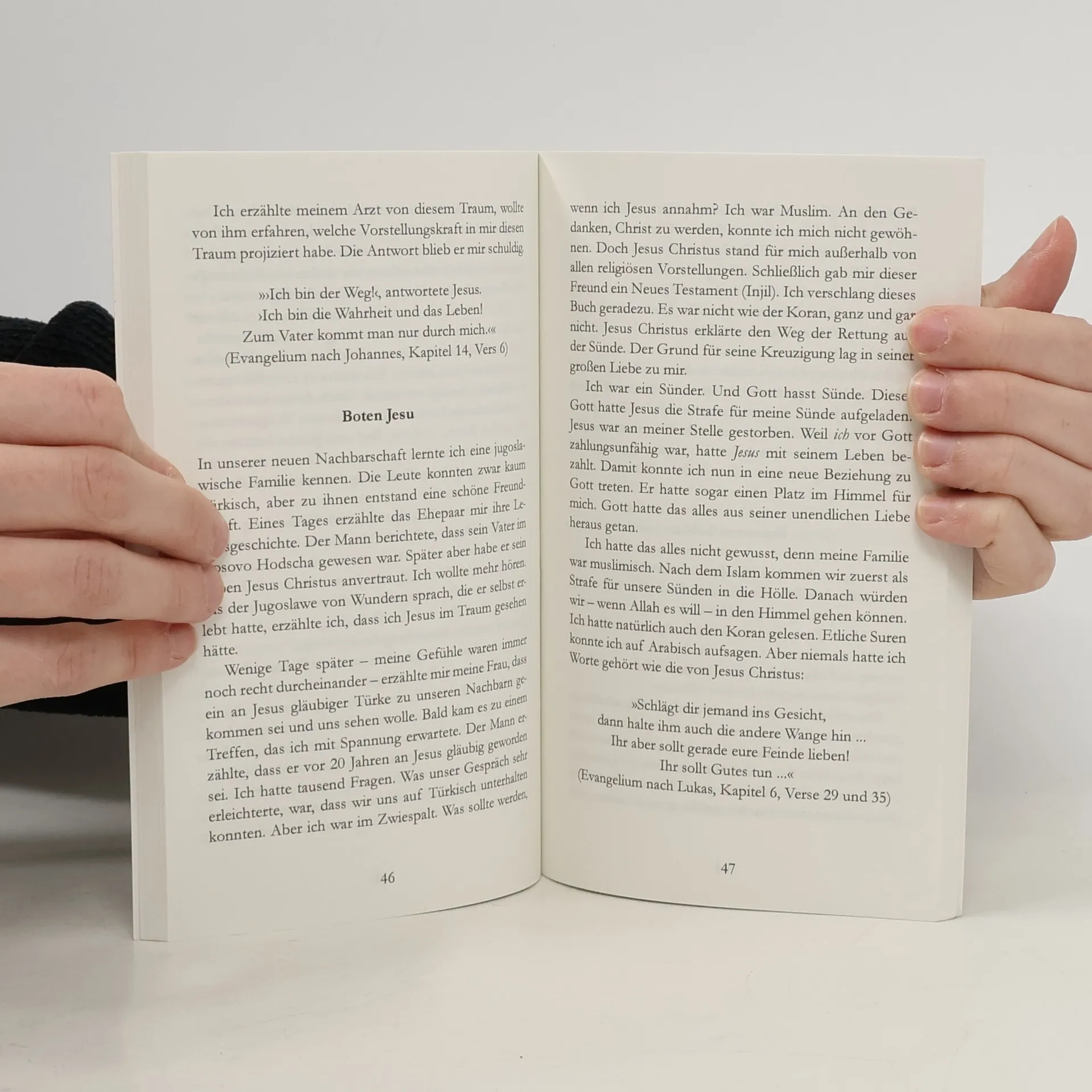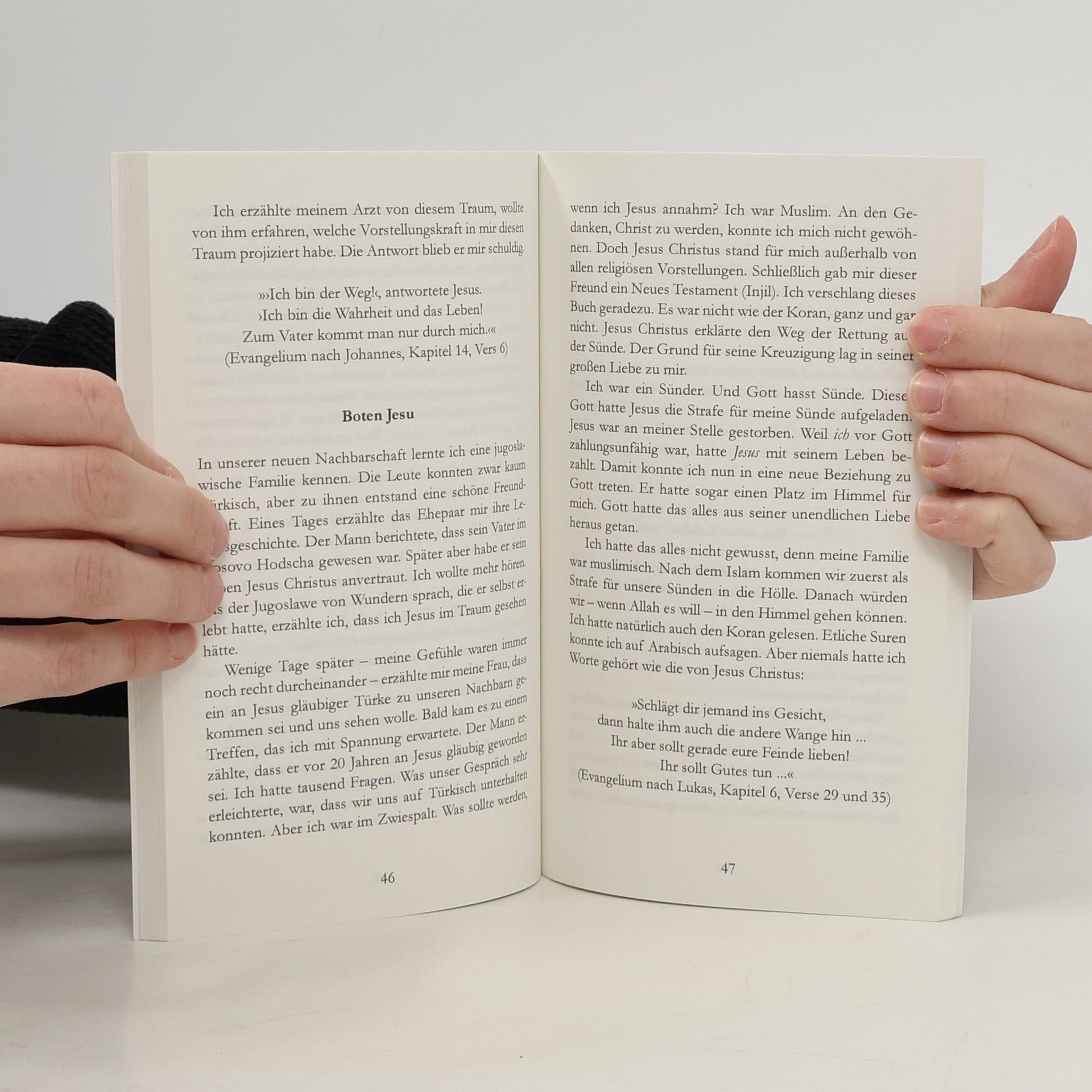 Für viele der in Deutschland lebenden jungen Muslime ist das Christentum eine fremde Religion, über die sie kaum etwas wissen und über die sie niemand informiert. Innerlich zerrissen zwischen der Religion und strengen Tradition ihrer Eltern und dem Anpassungsdruck an die westliche Gesellschaft mit ihrem freizügigen Lebensstil suchen viele dieser jungen Menschen Orientierung für ihr Leben. Dabei sind sie vielfach offen für das Evangelium. Dieses evangelistische Verteilbuch richtet sich an in Deutschland geborene junge Muslime. Ausgehend vom Schöpfungsbericht der Bibel werden u. a. die Fragen nach Gott, dem Sinn des Lebens und dem Problem der Sünde besprochen und sehr einfühlsam aus biblischer Sicht dargestellt. Der größte Teil des Buches enthält jedoch Lebensberichte von Muslimen, die zum Glauben an Jesus Christus gefunden haben. Besonders für jugendliche Christen ist dieses Verteilbuch eine ausgezeichnete Möglichkeit, um mit ihren muslimischen (Schul-)Freunden oder Kollegen ins Gespräch über Jesus Christus und das Evangelium zu kommen.
