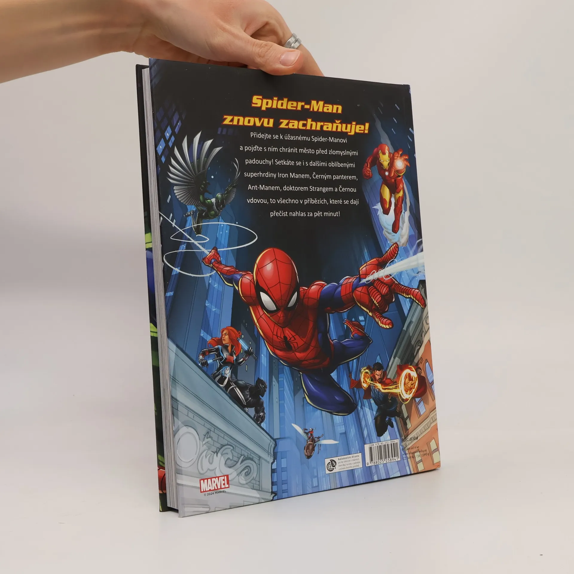 Přidejte se k úžasnému Spider-Manovi a pojďte s ním chránit město před zlomyslnými padouchy! Setkáte se i s dalšími oblíbenými superhrdiny Iron Manem, Černým panterem, Ant-Manem, doktorem Strangem a Černou vdovou, to všechno v příbězích, které se dají přečíst nahlas za pět minut!