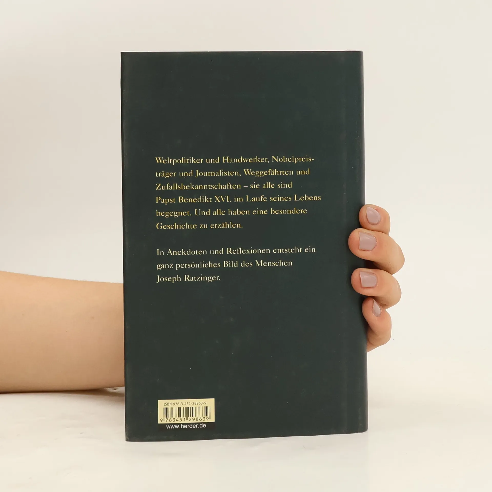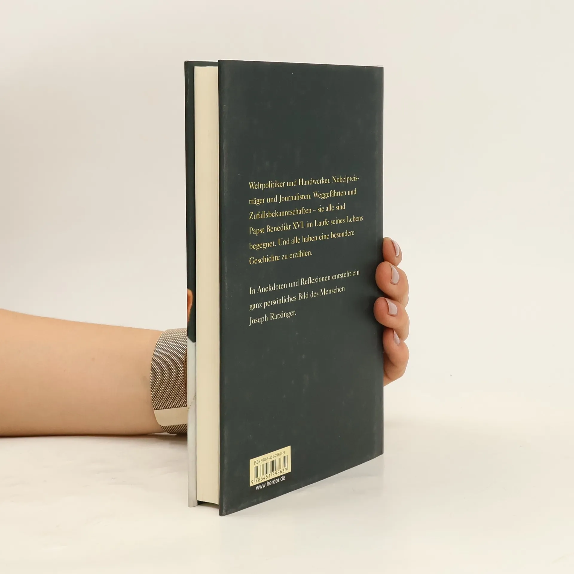Im Lauf seines Lebens als Bayer, als Theologe, als Bischof und Kardinal, schließlich als Papst ist Joseph Ratzinger vielen Menschen persönlich begegnet – bei ganz verschiedenen Anlässen, manchen nur einmalig, anderen über viele Jahre immer wieder. Ca. 40 Frauen und Männer erzählen von ihren Begegnungen mit dem heutigen Papst. In Geschichten und Anekdoten, Tief- und Hintergründigem entsteht so aus vielen Facetten ein lebendiges Porträt des Menschen Joseph Ratzinger. Beiträge u. a. von: Ali Bardagoglu, Kai Dieckmann, P. Eberhard v. Gemmingen, Alfred Läpple, Odilo Lechner, Karl Kardinal Lehmann, Joachim Kardinal Meisner, Hans-Joachim Meyer, Shimon Perez, Fritz Pleitgen, Markus Schächter, Michael Smotyzek, Gerhard Westdickenberg.