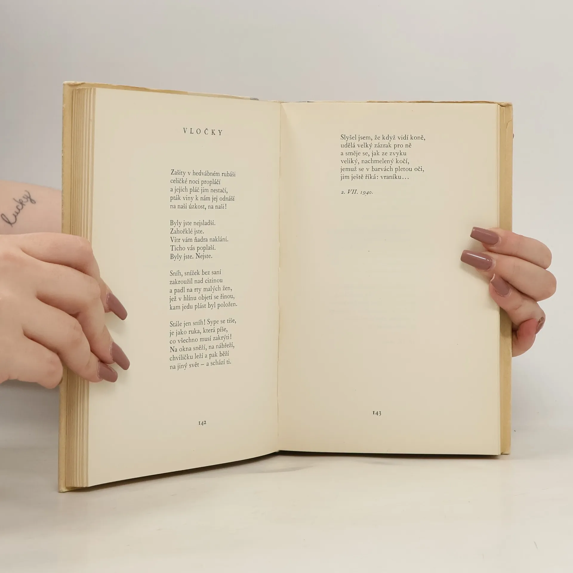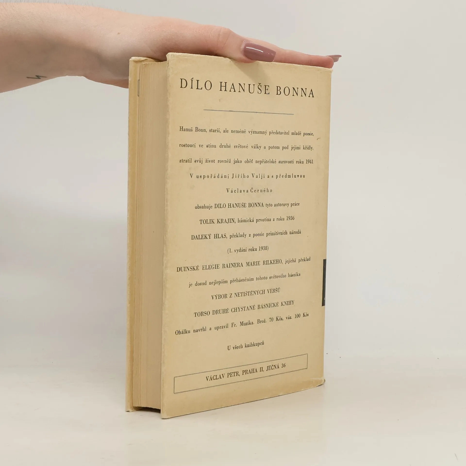 Kniha, kterou jest Jiří Oten po prvé představován v celistvosti svého básnického vývoje a úhrnem svých veršů publikovaných i obsáhlým výběrem z nepublikovaných. Má tři části: básnické sbírky, básně porůznu otištěné a básně netištěné. 1. vydání s fotografií autora.