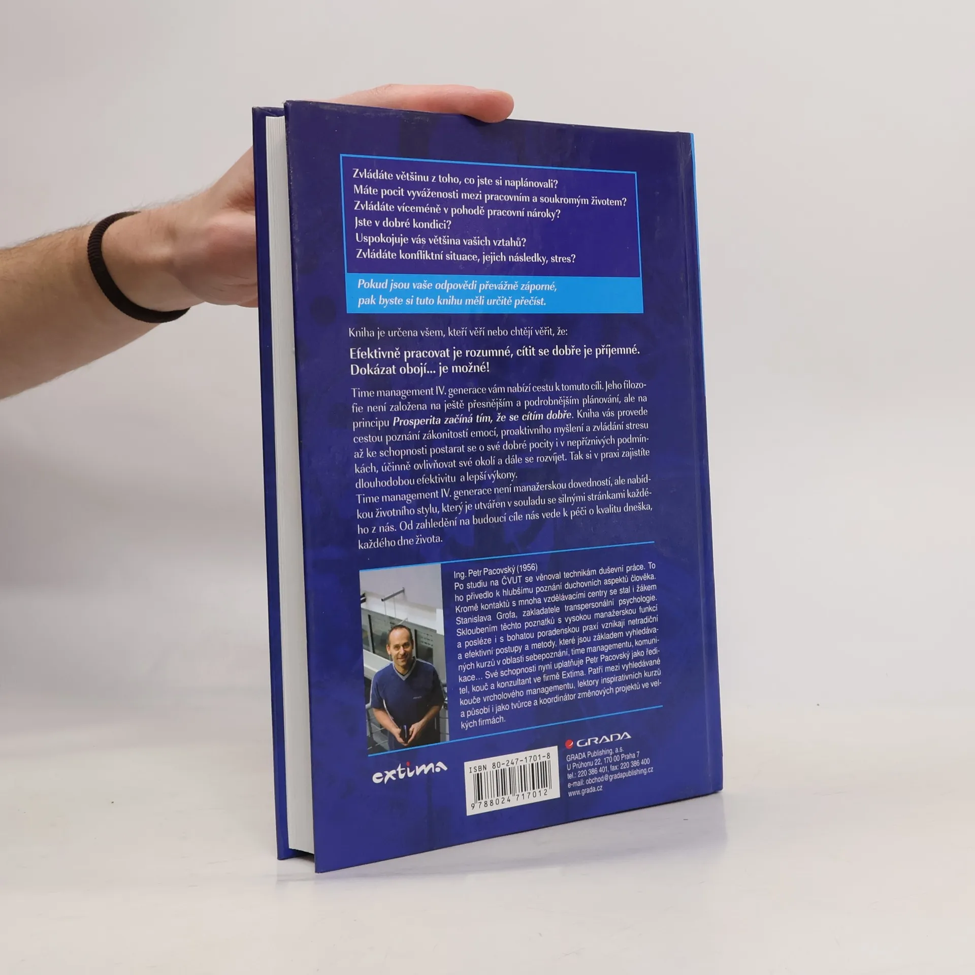 Zvládáte většinu z toho, co jste si naplánovali? Máte pocit vyváženosti mezi pracovním a soukromým životem? Zvládáte víceméně v pohodě pracovní nároky? Jste v dobré kondici? Uspokojuje vás většina vašich vztahů? Zvládáte konfliktní situace, jejich následky, stres? Pokud jsou vaše odpovědi převážně záporné, pak byste si tuto knihu měli určitě přečíst. Publikace je určena všem, kteří věří nebo chtějí věřit, že: Efektivně pracovat je rozumné, cítit se dobře je příjemné, dokázat obojí... je možné! Time management IV. generace vám nabízí cestu k tomuto cíli. Jeho filozofie není založena na ještě přesnějším a podrobnějším plánování, ale na principu: Prosperita začíná tím, že se cítím dobře. Kniha vás provede cestou poznání zákonitostí emocí, proaktivního myšlení a zvládání stresu až ke schopnosti postarat se o své dobré pocity i v nepříznicých podmínkách, účinně ovlivňovat své okolí a dále se rozvíjet. Tak si v praxi zajístíte dlouhodobou efektivitu a lepší výkony. (time management IV. generace) Dotisky r. 2008 a 2011
