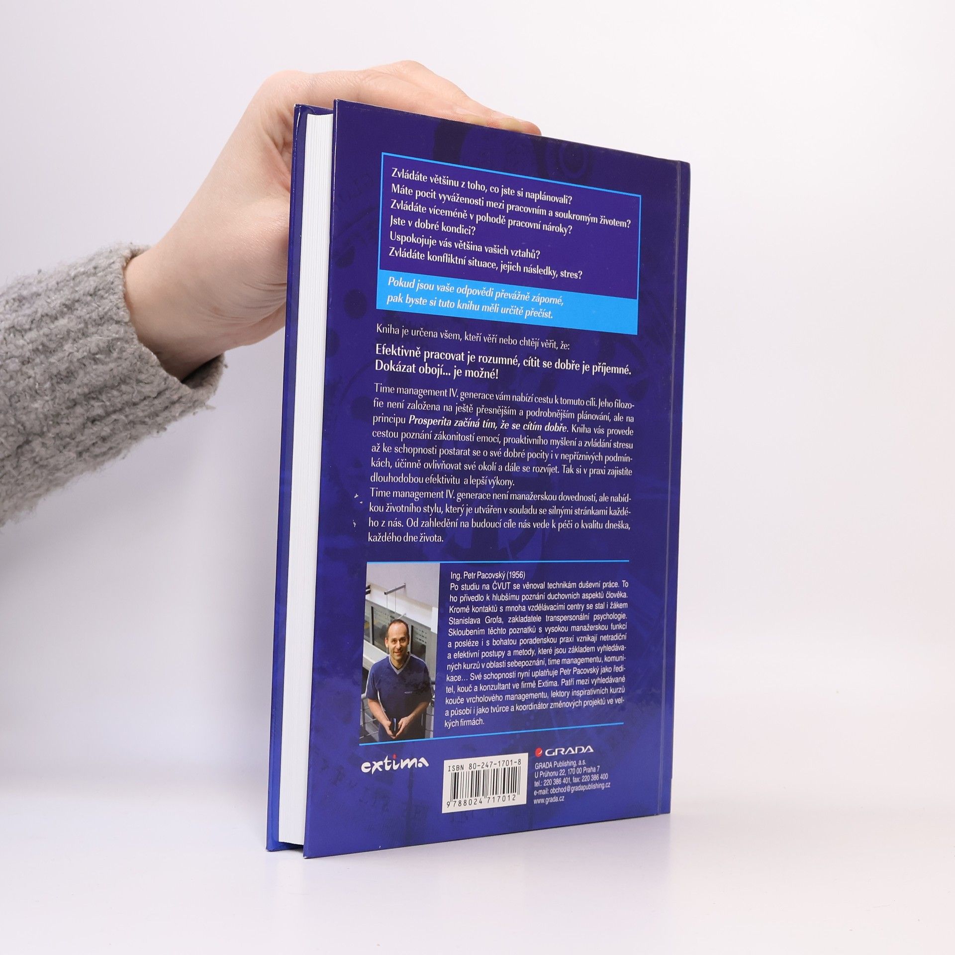 Zvládáte většinu z toho, co jste si naplánovali? Máte pocit vyváženosti mezi pracovním a soukromým životem? Zvládáte víceméně v pohodě pracovní nároky? Jste v dobré kondici? Uspokojuje vás většina vašich vztahů? Zvládáte konfliktní situace, jejich následky, stres? Pokud jsou vaše odpovědi převážně záporné, pak byste si tuto knihu měli určitě přečíst. Publikace je určena všem, kteří věří nebo chtějí věřit, že: Efektivně pracovat je rozumné, cítit se dobře je příjemné, dokázat obojí... je možné! Time management IV. generace vám nabízí cestu k tomuto cíli. Jeho filozofie není založena na ještě přesnějším a podrobnějším plánování, ale na principu: Prosperita začíná tím, že se cítím dobře. Kniha vás provede cestou poznání zákonitostí emocí, proaktivního myšlení a zvládání stresu až ke schopnosti postarat se o své dobré pocity i v nepříznicých podmínkách, účinně ovlivňovat své okolí a dále se rozvíjet. Tak si v praxi zajístíte dlouhodobou efektivitu a lepší výkony. (time management IV. generace) Dotisky r. 2008 a 2011