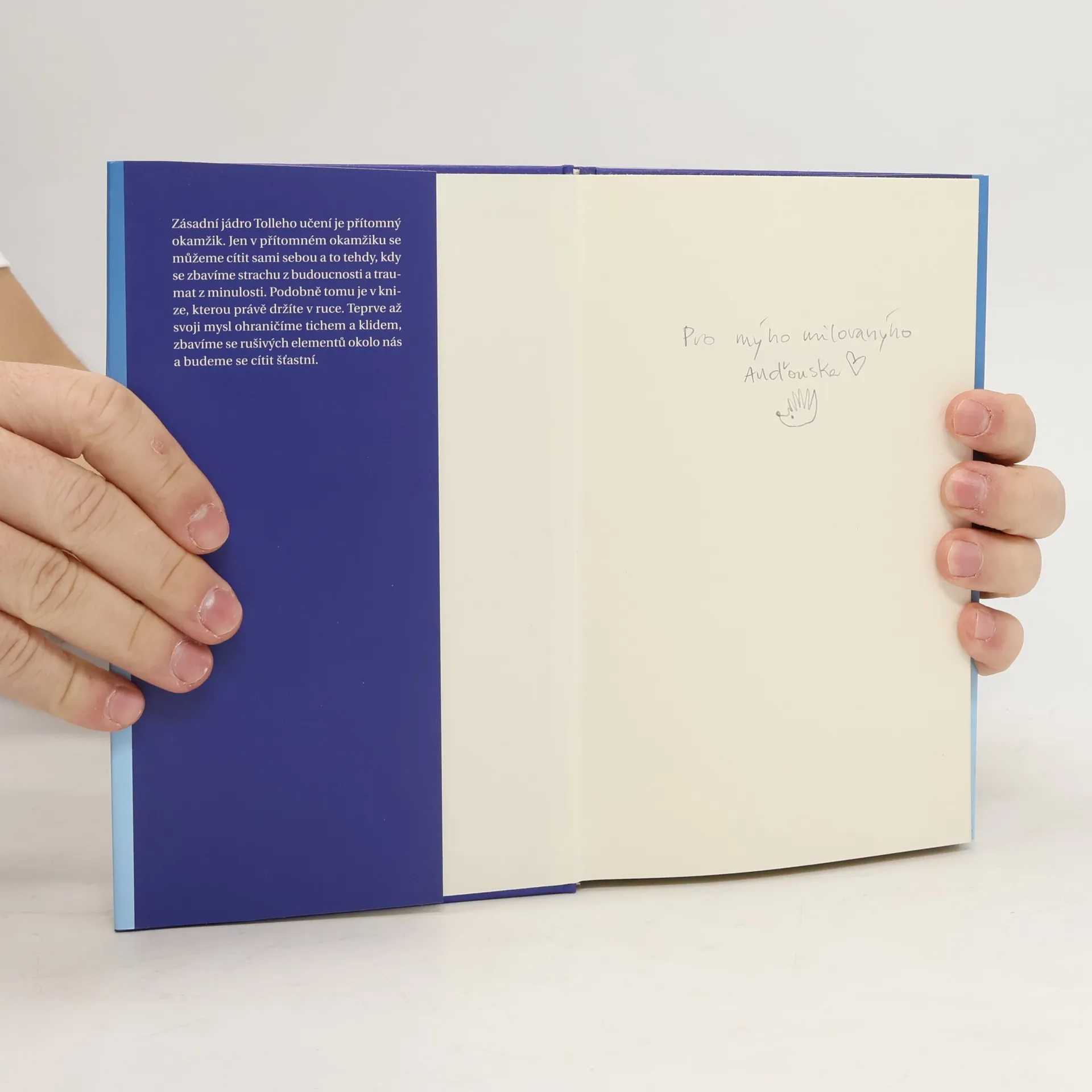 Když se spojíme s tichem ve svém nitru, tak překročíme hranice své aktivní mysli a objevíme hloubku klidu a spokojenosti. S tímto poselstvím se seznámili čtenáři na celém světě v Tolleově první knize Moc přítomného okamžiku. Ve své druhé, dlouho očekávané knize, nám Eckhart Tolle vysvětluje esenci svého učení jednodušším způsobem určeným pro každého. Kniha je rozdělena do deseti kapitol, z nichž je každá mozaikou stručně vyjádřených myšlenek.