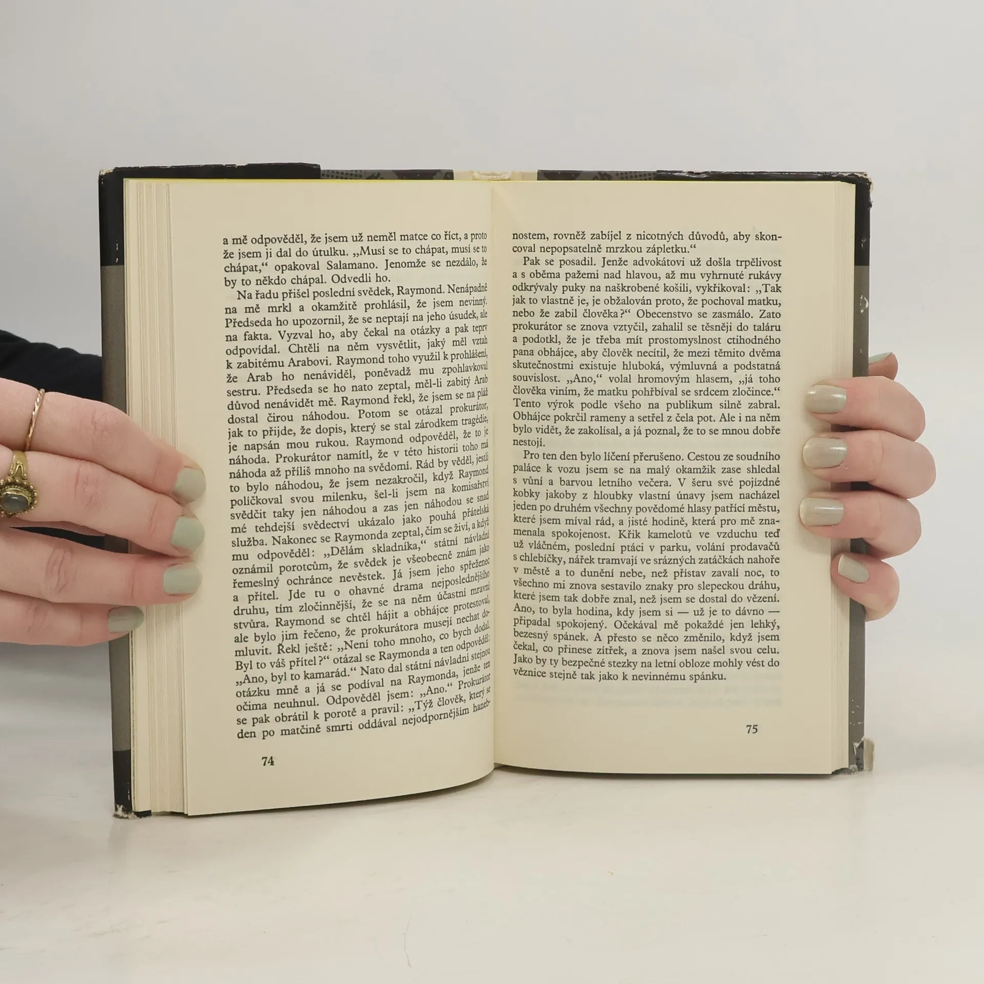 Cizinec (1942) – Z deníku Alberta Camuse: „Vypravování. Člověk, který se nechce ospravedlnit. Představa, kterou si o něm udělají, se mu líbí. Zemře s vědomím vlastní pravdy. Zbytečnost této útěchy.“ Pád (1956) – J. B. Clamence (Jean Baptiste – Jan Křtitel!) nesnáší pocit být souzen, proto obviňuje sám sebe a před náhodnými hosty v baru opakuje svůj vlastní proces. Hrdinové obou knih jsou značně rozdílní. Hlavní postava Cizince Meursault je některými kritiky považován za nadměrně mlčenlivého, má až schizofrenické rysy mutismu, zato Clamence, ústřední vypravěč Pádu, hlas volající z pouště, toť úplné obžerství slov. Mluví a mluví a mluví a tak se mu daří znamenitý trik: čím více toho napovídá, čím více toho nasvěřuje, tím více nám uniká, tím méně o něm víme. Nad Meursaultem i nad Clamencem se vznášejí záhady: přes všechnu jasnost čemusi stále nerozumíme, něco se skrývá jak za clonou mlčení Meursaulta, tak za clonou slov Clamence. Vzrušující tím, co už si do nich musíme vkládat sami.