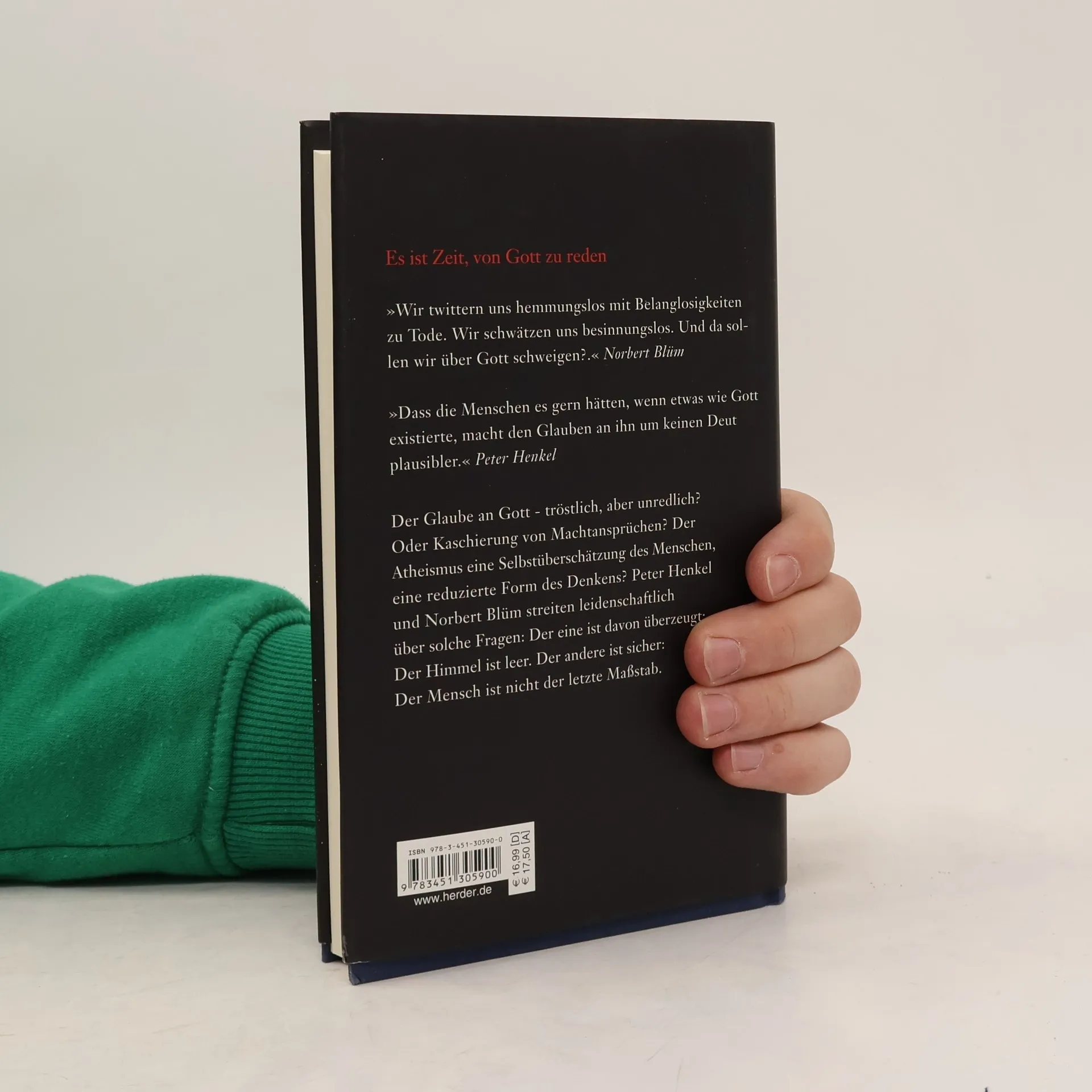 'Dass die Menschen es gern hätten, wenn etwas wie Gott existierte, macht den Glauben an ihn um keinen Deut plausibler.' Peter Henkel 'Wir twittern uns hemmungslos mit Belanglosigkeiten zu Tode. Wir schwätzen uns besinnungslos. Und da sollen wir über Gott schweigen?.' Norbert Blüm Der Glaube an Gott - tröstlich, aber unredlich? Oder Kaschierung von Machtansprüchen? Und die Kirchenkrise - eine Krise des Gottesglaubens? Was heißt das überhaupt: 'Gott'? Was wäre, wenn Er nicht existiert? Peter Henkel und Norbert Blüm sprechen Klartext und streiten leidenschaftlich: ein politischer Journalist, der davon überzeugt ist: der Himmel ist leer. Der andere ist sicher: Der Mensch ist nicht der letzte Maßstab.