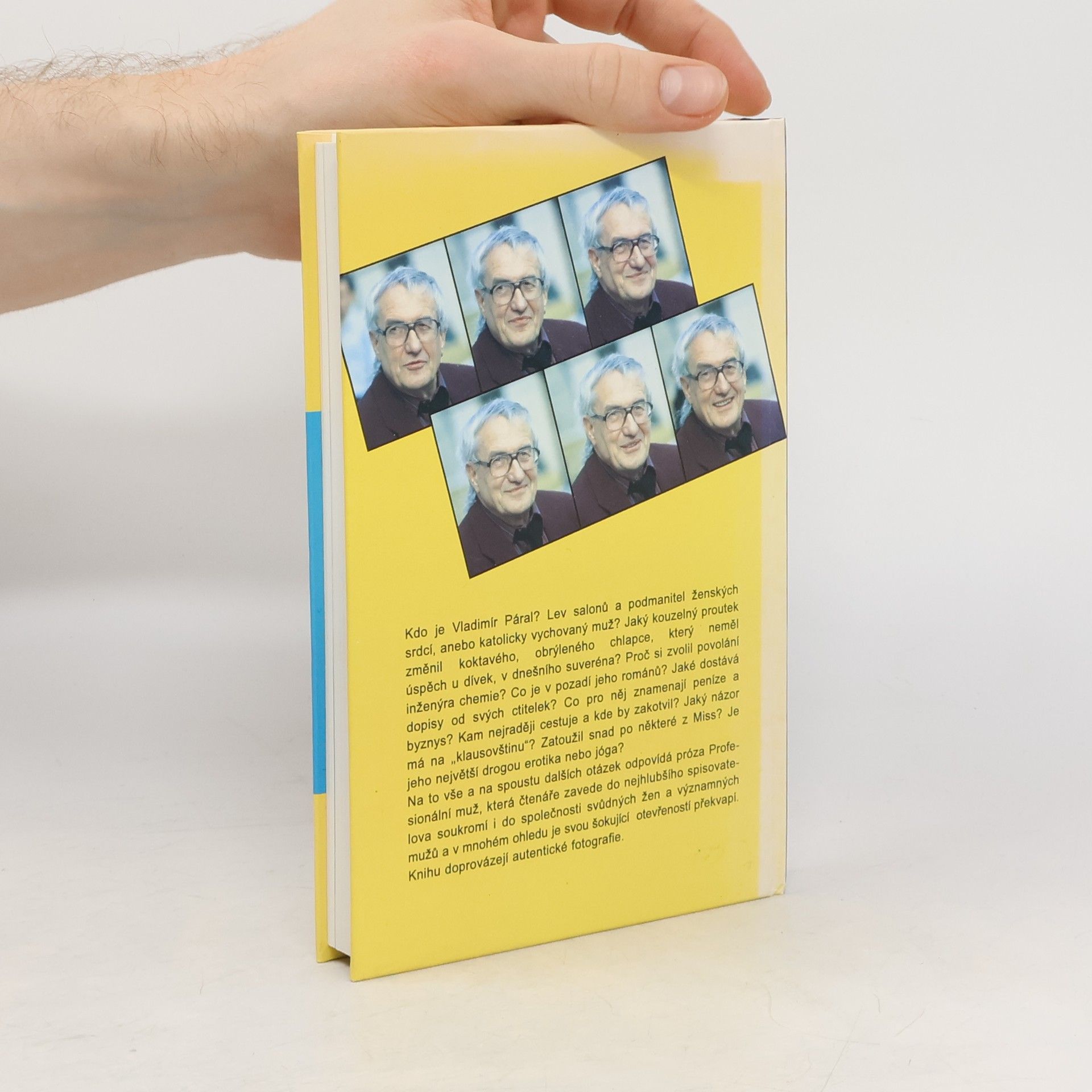 Kdo je Vladimír Páral? Lev salonů a podmanitel ženských srdcí, anebo katolicky vychovaný muž? Jaký kouzelný proutek změnil koktavého, obrýleného chlapce, který neměl úspěch u dívek, v dnešního suveréna? Proč si zvolil povolání inženýra chemie? Co je v pozadí jeho románů? Jaké dostává dopisy od svých ctitelek? Co pro něj znamenají peníze a byznys? Kam nejraději cestuje a kde by zakotvil? Jaký názor má na „klausovštinu"? Zatoužil snad po některé z Miss? Je jeho největší drogou erotika nebo jóga? Na to vše a na spoustu dalších otázek odpovídá próza Profesionální muž, která čtenáře zavede do nejhlubšího spisovatelova soukromí i do společnosti svůdných žen a významných mužů a v mnohém ohledu je svou šokující otevřeností překvapí. Knihu doprovázejí autentické fotografie.