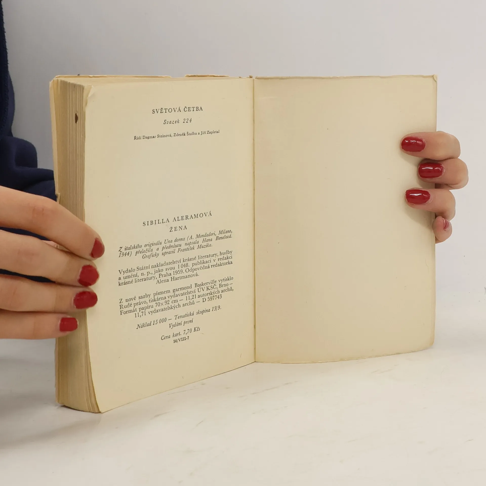 "Kniha, kniha... Nedoufala jsem, že bych ji byla schopna kdy napsat. Ale pociťovala jsem přímo trýznivá muka, když jsem si představovala tuto knihu, o jejíž nutnosti jsem byla tak přesvědčena, knihu o lásce a bolesti, dojímavou, a přece užitečnou, nelítostnou, a přece soucitnou, která by poprvé ukázala celému světu duši moderní ženy, která by se poprvé dotkla svědomí a citu muže, toho smutného druha... Což ji nikdo nenapíše?" Tuto patetickou otázku zodpověděla Sibilla Aleram kdysi dávno na počátku 20. století svou zpovědí nejslavnější, nazvanou prostě Žena. Historií mladé ženy, jež uvede ve skutek gesto Ibsenovy Nory. City a myšlenky, jež tu, tehdy mladičká, autorka vyslovila, věk možná prohloubil, umělecká zkušenost vytříbila její výraz, přesto však zaujímá Žena první místo v její tvorbě: pro svou upřímnost, naléhavost, pro svůj mladistvý elán.