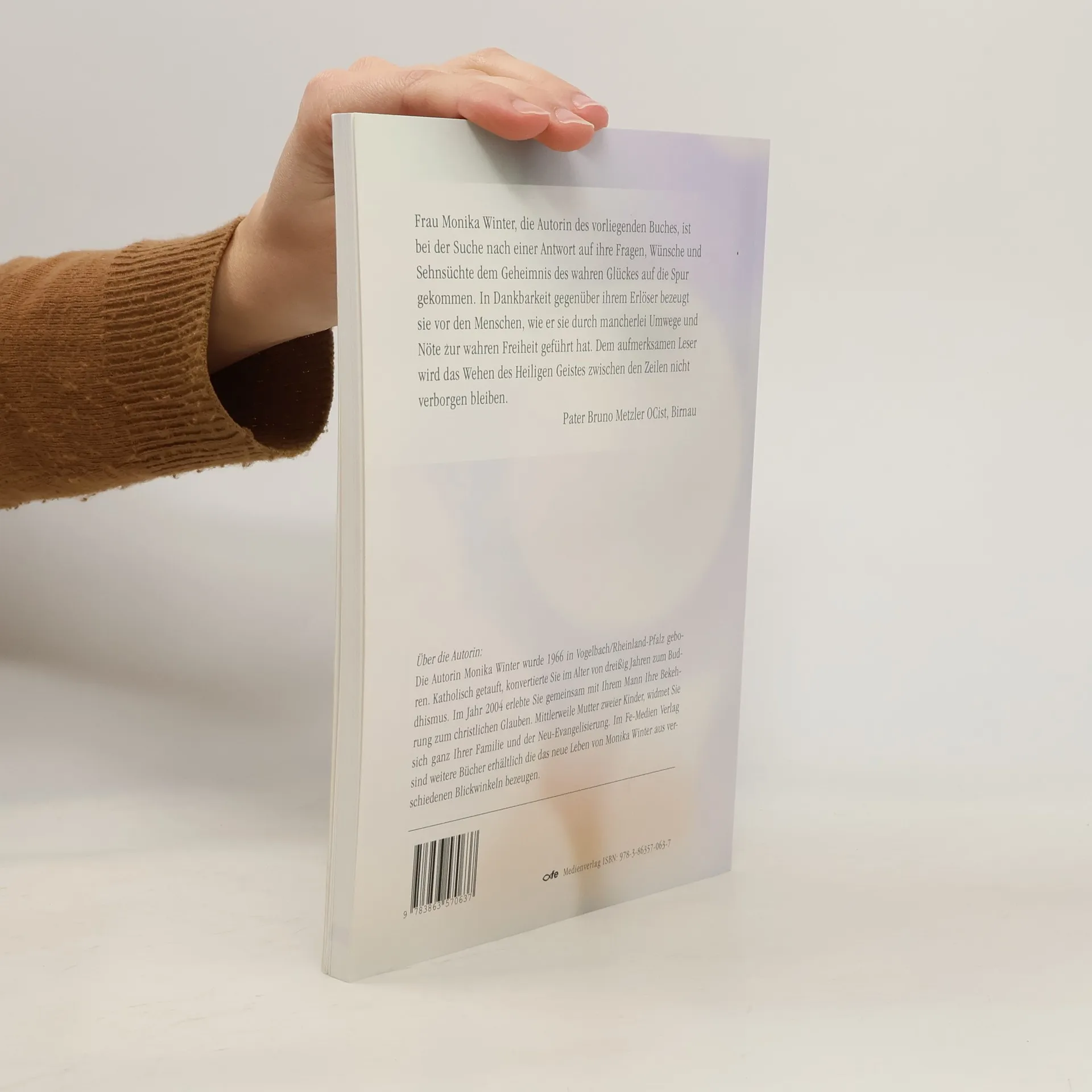 Monika Winter ist bei der Suche nach einer Antwort auf ihre Fragen, Wünsche und Sehnsüchte dem Geheimnis des wahren Glücks auf die Spur gekommen. In Dankbarkeit gegenüber ihrem Erlöser bezeugt sie vor den Menschen, wie er sie durch mancherlei Umwege und Nöte zur wahren Freiheit geführt hat. Dem aufmerksamen Leser wird das Wehen des Heiligen Geistes zwischen den Zeilen nicht verborgen bleiben