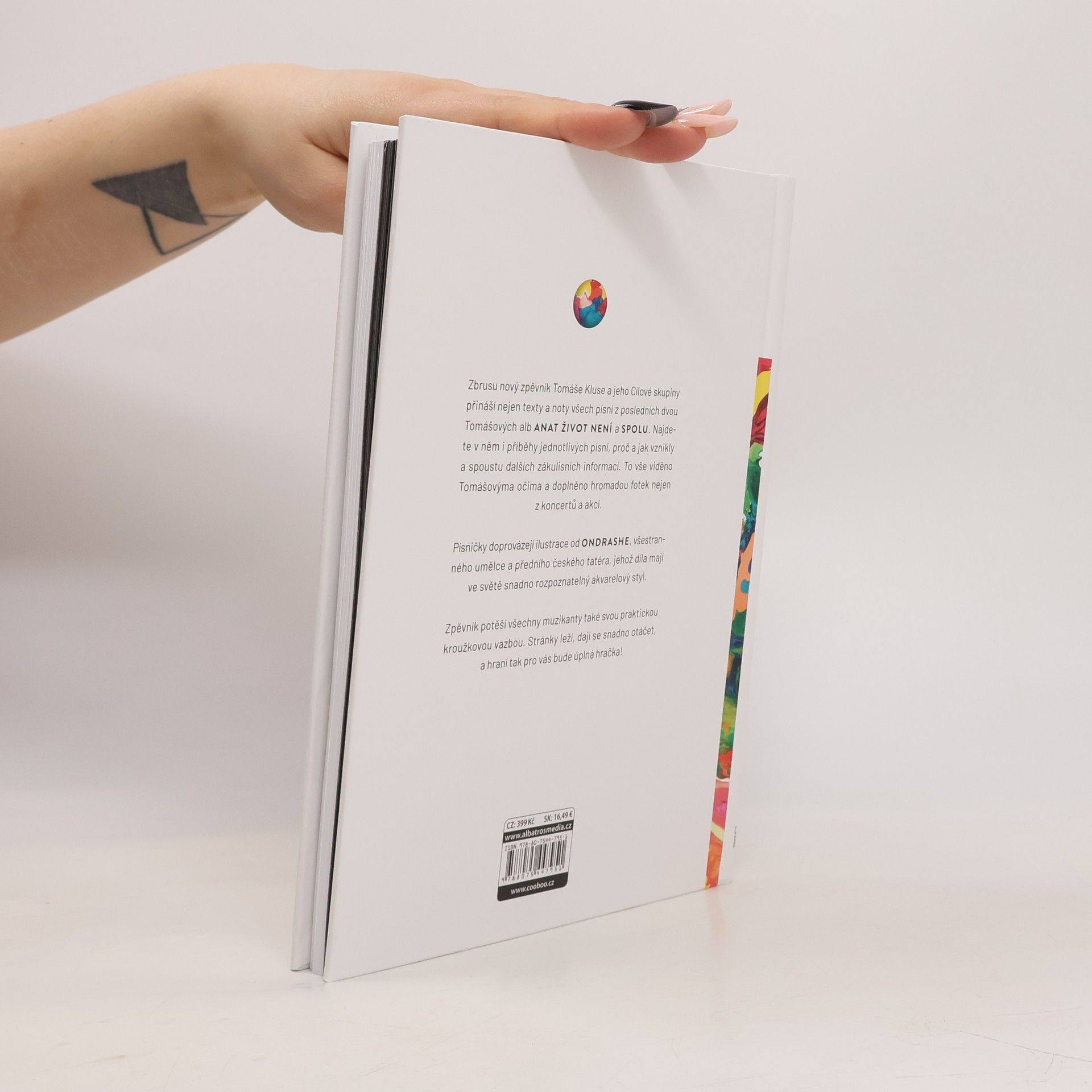 Zbrusu nový zpěvník Tomáše Kluse a jeho Cílové skupiny přináší nejen texty a noty všech písní z posledních dvou Tomášových alb Anat život není a Spolu. Najdete v něm i příběhy jednotlivých písní, proč a jak vznikly a spoustu dalších zákulisních informací. To vše viděno Tomášovýma očima a doplněno hromadou fotek nejen z koncertů a akcí. Písničky doprovázejí ilustrace od Ondrashe, všestranného umělce a předního českého tatéra, jehož díla mají ve světě snadno rozpoznatelný akvarelový styl. Zpěvník potěší všechny muzikanty také svou praktickou kroužkovou vazbou. Stránky leží, dají se snadno otáčet a hraní tak pro vás bude úplná hračka!