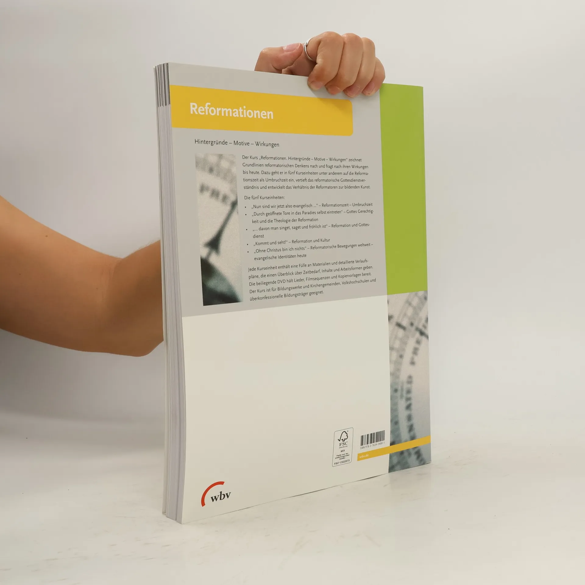 Die Reformationszeit markierte einen Umbruch im europäischen Denken, besonders im Nachdenken über den Glauben. Der Kurs „Reformationen. Hintergründe - Motive - Wirkungen“ zeichnet Grundlinien reformatorischen Denkens nach und fragt nach ihren Wirkungen bis heute. Dazu geht er in fünf Kurseinheiten unter anderem auf die Reformationszeit als Umbruchzeit ein, vertieft das reformatorische Gottesdienstverständnis und entwickelt das Verhältnis der Reformatoren zur bildenden Kunst. Die einzelnen Kurseinheiten enthalten eine Fülle an Materialien und detaillierte Verlaufspläne, die einen Überblick über Zeitbedarf, Inhalte und Arbeitsformen geben. Der Kurs ist für Bildungswerke und Kirchengemeinden, Volkshochschulen und überkonfessionelle Bildungsträger geeignet.