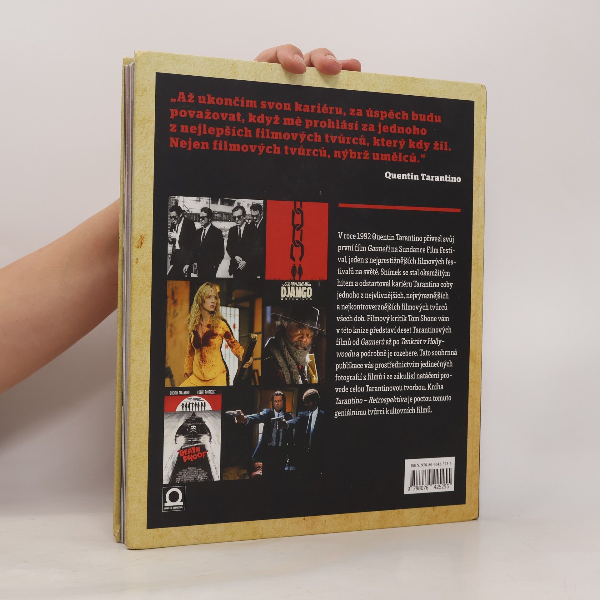 Nové vydání rozšířené o filmovou novinku Tenkrát v Hollywoodu. Tato úžasná retrospektivní fotografická publikace mapuje všechny filmy Quentina Tarantina, od My Best Friend’s Birthday, přes Pulp Fiction, Hanebný pancharty až po novinku Tenkrát v Hollywoodu. Dozvíte se o Tarantinových začátcích, o stylu jakým píše scénáře a repliky. Jeho filmy jsou v knize rozděleny do samostatných kapitol, popisují průběh natáčení i jeho okolnosti. Celou publikaci prostupují filmové fotografie, Tarantinovy výroky i hlášky z filmů. Kniha je poctou výjimečnému režisérovi, producentovi, scénáristovi i herci - vášnivému a nespoutanému tvůrci kultovních filmů.