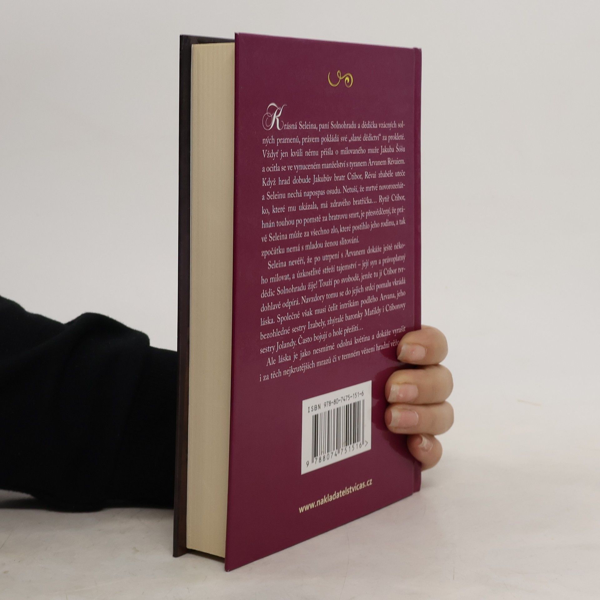 Krásná Seleina, paní Solnohradu a dědička vzácných solných pramenů, právem pokládá své "slané dědictví" za prokleté. Vždyť jen kvůli němu přišla o milovaného muže a ocitla se ve vynuceném manželství s tyranem Arvanem Révaiem. Když hrad dobije Ctibor Šóša, Révai zbaběle uteče a Seleinu nechá napospas osudu. Rytíř Ctibor, jehož vpřed žene touha po pomstě za bratrovu smrt, je přesvědčený, že právě Seleina může za všechno zlo, které postihlo jeho rodinu, a tak zpočátku nemá s mladou ženou slitování. Seleina nevěří, že po utrpení s Arvanem dokáže ještě někoho milovat, a úzkostlivě stráží tajemství narození právoplatného dědice Solnohradu. Touží po svobodě a volnosti, kterou jí však Ctibor tvrdohlavě odpírá. Navzdory tomu se láska pomalu vkrádá do jejich srdcí - i za cenu, že oba musí čelit intrikám podlého Arvana, jeho sestry Izabely i vlastní rodiny. Osud jim do cesty postaví mnoho překážek a bolesti, než se Seleina a Ctibor dočkají naplnění své lásky.
