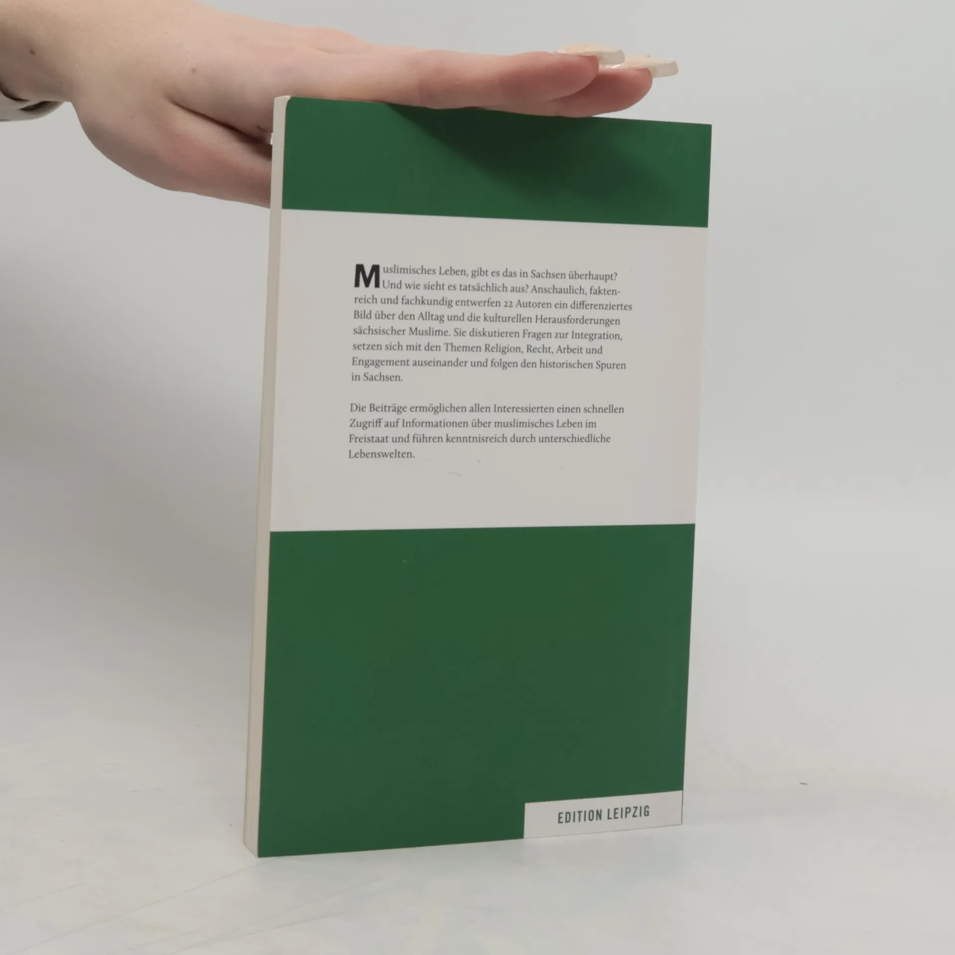 Muslimisches Leben, gibt es das in Sachsen überhaupt? Und wie sieht es tatsächlich aus? Anschaulich, faktenreich und fachkundig entwerfen 22 Autoren ein differenziertes Bild über den Alltag und die kulturellen Herausforderungen sächsischer Muslime. Sie diskutieren Fragen zur Integration, setzen sich mit den Themen Religion, Recht, Arbeit und Engagement auseinander und folgen den historischen Spuren in Sachsen. Die Beiträge ermöglichen allen Interessierten einen schnellen Zugriff auf sachliche Informationen über muslimisches Leben im Freistaat und führen kenntnisreich durch die unterschiedlichen Lebenswelten.