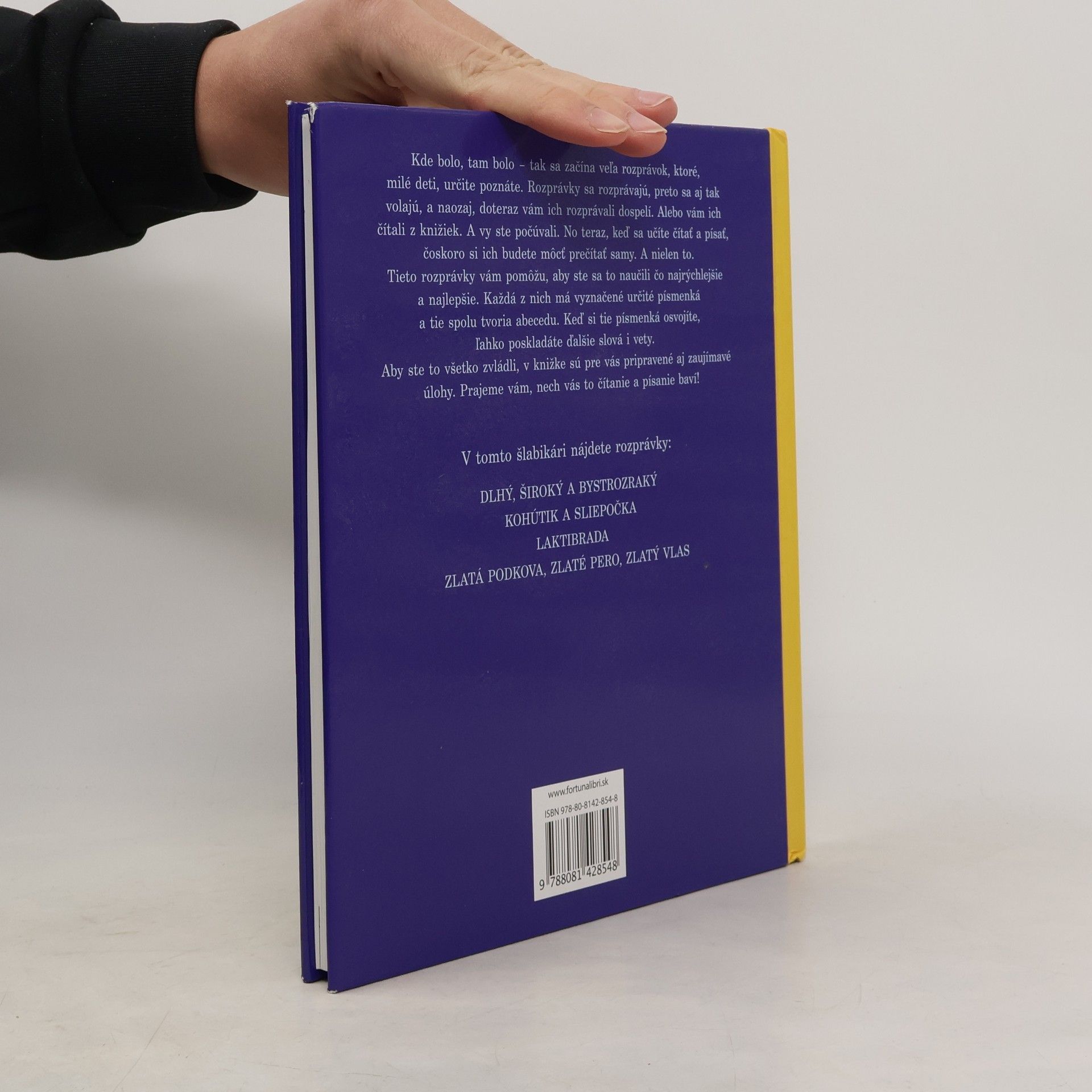Kde bolo, tam bolo – tak sa začína veľa rozprávok, ktoré, milé deti, určite poznáte. Rozprávky sa rozprávajú, preto sa aj tak volajú, a naozaj, doteraz vám ich rozprávali dospelí. Alebo vám ich čítali z knižiek. A vy ste počúvali. No teraz, keď sa učíte čítať a písať, čoskoro si ich budete môcť prečítať samy. A nielen to. Tieto rozprávky vám pomôžu, aby ste sa to naučili čo najrýchlejšie a najlepšie. Každá z nich má vyznačené určité písmenká a tie spolu tvoria abecedu. Keď si tie písmenká osvojíte, ľahko poskladáte ďalšie slová i vety. Aby ste to všetko zvládli, v knižke sú pre vás pripravené aj zaujímavé úlohy. Prajeme vám, nech vás to čítanie a písanie baví! V tomto šlabikári nájdete rozprávky: Dlhý, Široký a Bystrozraký, Kohútik a sliepočka, Laktibrada, Zlatá podkova, zlaté pero, zlatý vlas