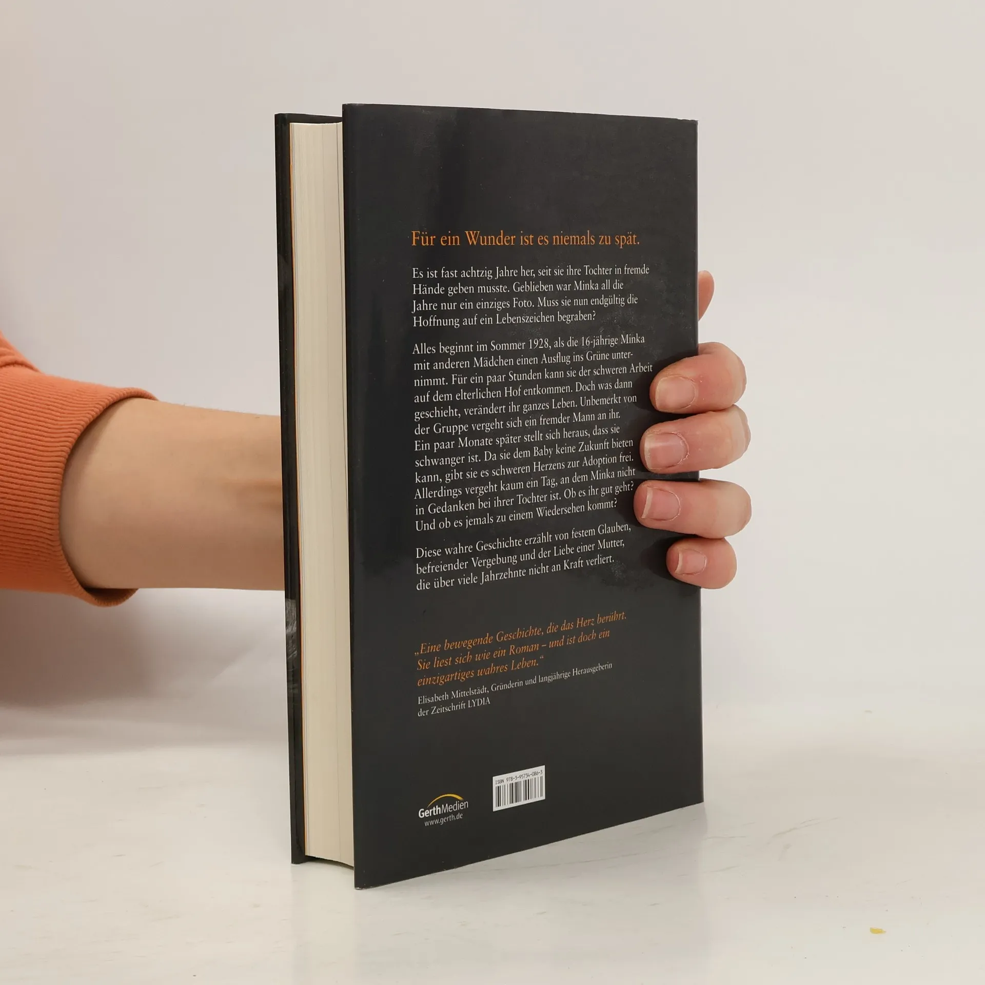 Es ist fast achtzig Jahre her, seit sie ihre Tochter in fremde Hände geben musste. Geblieben war Minka all die Jahre nur ein einziges Foto. Muss sie nun endgültig die Hoffnung auf ein Lebenszeichen begraben? Alles beginnt im Sommer 1928, als die 16-jährige Minka mit anderen Mädchen einen Ausflug ins Grüne unternimmt. Für ein paar Stunden kann sie der schweren Arbeit auf dem elterlichen Hof entkommen. Doch was dann geschieht, verändert ihr ganzes Leben. Unbemerkt von der Gruppe vergeht sich ein fremder Mann an ihr. Ein paar Monate später stellt sich heraus, dass sie schwanger ist. Da sie dem Baby keine Zukunft bieten kann, gibt sie es schweren Herzens zur Adoption frei. Allerdings vergeht kaum ein Tag, an dem Minka nicht in Gedanken bei ihrer Tochter ist. Ob es ihr gut geht? Und ob es jemals zu einem Wiedersehen kommt? Diese wahre Geschichte erzählt von festem Glauben, befreiender Vergebung und der Liebe einer Mutter, die über viele Jahrzehnte nicht an Kraft verliert.