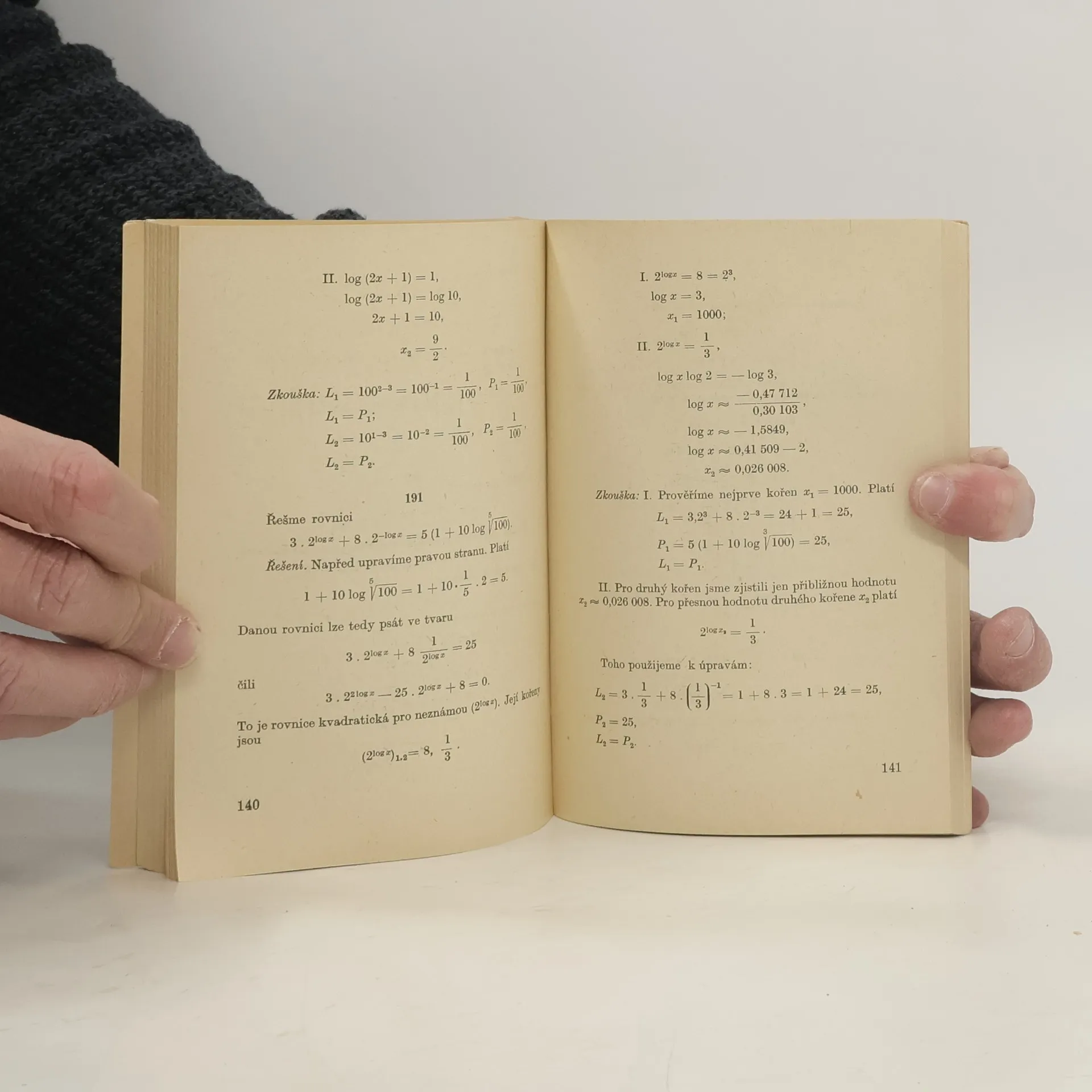 Řešené úlohy z matematiky : aritmetika a algebra. Sbírka obtížnějších příkladů pro zájemce o praktickou matematiku, kteří zde naleznou kromě rovnic a soustav lineárních a kvadratických také některé algebraické rovnice vyššího stupně, rovnice exponenciální a logaritmické. Závěrem každého řešení je provedena zkouška. 1. vydání.