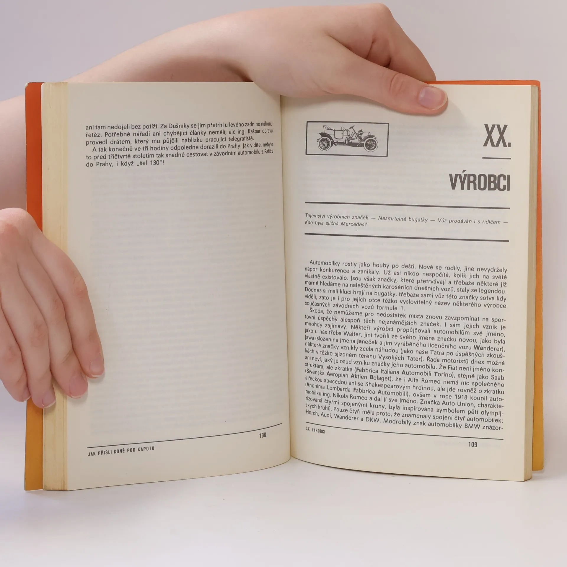 Příběhy tu rozmarné, tu zase smutné, ale vždycky krásné. Například o pokusech s vozy na setrvačník, o strojích poháněných hodinovým pérem, o mechanickém koni, parním traktoru pro dělostřelce, o „ďáblově vynálezu“ inženýra Murdocka, o kapitánu Trevithickovi, o Ewansově obojživelníku. Ale také o vynálezu páry, který znamenal revoluci v technickém světě, elektrické energie a posléze i spalovacího motoru. Prostě o všem, co zákonitě směřovalo k vytouženému cíli, ke zrození automobilu. O tom, že to všechno nebylo tak snadné, jak se na první pohled zdá, že ne všechny myšlenky byly korunovány úspěchem, vypráví tato knížka.
