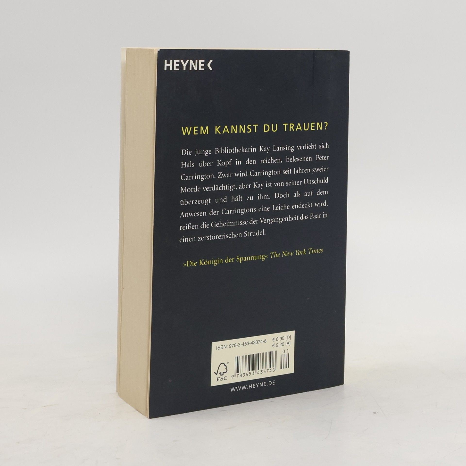 Wem kannst du trauen? Die junge Bibliothekarin Kay Lansing verliebt sich Hals über Kopf in den reichen, belesenen Peter Carrington. Zwar wird Carrington seit Jahren zweier Morde verdächtigt, aber Kay ist von seiner Unschuld überzeugt und hält zu ihm. Doch die Vergangenheit reißt das Paar in einen zerstörerischen Strudel.Als Kind hat Kay Lansing in der Familienkapelle der Carringtons den Streit eines Paares belauscht, in dem es um eine Erpressung ging. In derselben Nacht verschwand eine junge Frau für immer spurlos. Aber erst 22 Jahre später, frisch verheiratet, wird Kay gezwungen, nach dem Hintergrund ihres Erlebnisses zu forschen – ihr eigener Mann Peter Carrington wird beschuldigt, für das Verschwinden der jungen Frau verantwortlich zu sein. Und noch ein anderer Verdacht hält sich hartnäckig: Peter könnte seine erste Ehefrau im eigenen Swimmingpool ertränkt haben. Als das Verfahren gegen ihn neu aufgenommen wird und er nach einer revidierten Zeugenaussage unter Mordanklage steht, stürzt Kay sich fieberhaft in die Suche nach der Wahrheit, die sie nicht nur in die Vergangenheit ihres Mannes, sondern auch in ihre eigene führt. Sie ahnt nicht, dass ihre Entdeckung sie in tödliche Gefahr bringen wird.