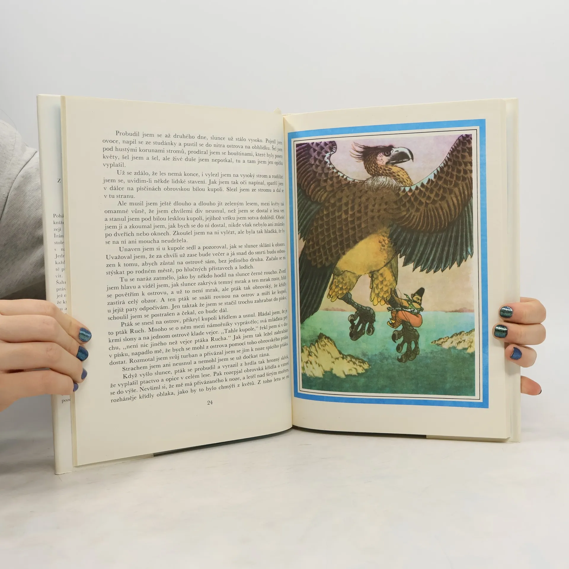 Výbor sedmi nejhezčích pohádek z Tisíce a jedné noci převyprávěných pro čtenáře od 6 let. (Pohádka o ebenovém koni, Dobrodružství Sindibáda Námořníka, Pohádka o Džaudarovi a jeho bratrech, Alí Baba a čtyřicet loupežníků, Pohádka o Abdalláhovi Zemském a Abdalláhovi Mořském, Pohádka o Abú Kírovi a Abú Sírovi, Aládín a kouzelná lampa). V bohaté fantazii probíhají rušné děje plné překvapivosti, vyjadřující dávné touhy prostých lidí po šťastném životě bez bídy a zla. Básník uvádí výbor půvabnou veršovanou pohádkou o Chytré Šahrazád a malíř vytvořil řadu působivých pohádkových ilustrací, plných barvité cizokrajnosti.