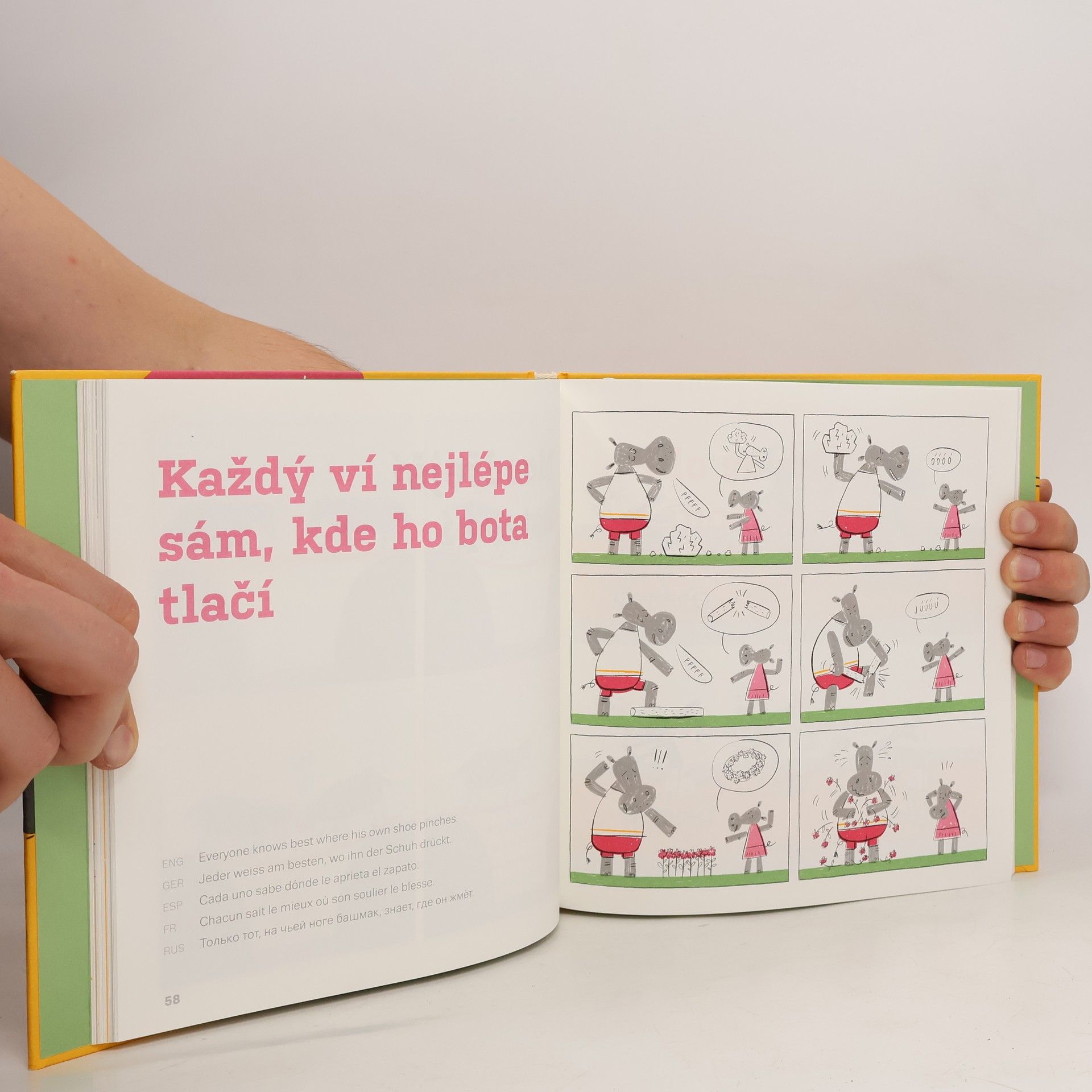 Kolik kuchařů přesolí kaši? Kdy si oblékáme železnou košili? A co je to vůbec dišputát? Oblíbená autorská dvojice připravila průvodce po známých i neznámých příslovích, a aby toho nebylo málo, doprovodila každé z nich krátkým výstižným komiksem. Vznikla tak knížka, kterou si oblíbí nejen děti, jimž pomůže porozumět jazyku a rozšířit si slovní zásobu, ale vlastně každý, kdo má rád češtinu, její malebnost a zákruty. Tahle kniha není učebnice, a přesto se při jejím čtení a prohlížení poučíte, ale hlavně pobavíte. Koneckonců smích je kořením života, ne?