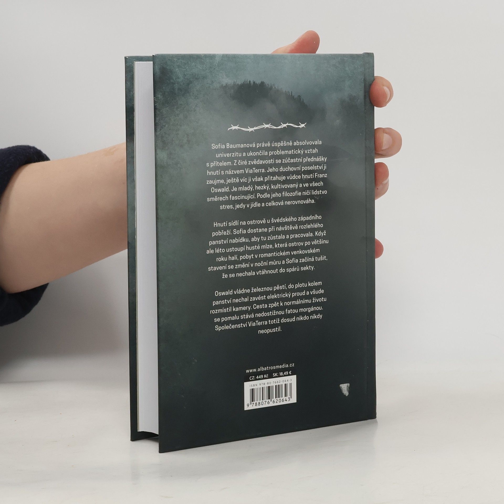 Sofia Baumanová právě úspěšně absolvovala univerzitu a ukončila problematický vztah s přítelem. Z čiré zvědavosti se zúčastní přednášky o New Age hnutí s názvem ViaTerra. Jeho duchovní poselství ji zaujme, ještě víc ji však přitahuje vůdce hnutí Franz Oswald. Je mladý, hezký, kultivovaný a ve všech směrech fascinující. Podle jeho filozofie ničí lidstvo stres, jedy v jídle a celková nerovnováha. Hnutí sídlí na ostrově u švédského západního pobřeží. Sofia dostane při návštěvě rozlehlého panství nabídku, aby tu zůstala a pracovala. Když ale léto ustoupí husté mlze, která ostrov po většinu roku zahaluje, pobyt na romantickém venkovském stavení se změní v noční můru a Sofia začíná tušit, že se nechala vtáhnout do spárů sekty. Oswald vládne železnou pěstí, kolem panství nechal postavit elektrický plot a všude rozmístil kamery. Cesta zpět k normálnímu životu se pomalu stává nedostižnou fatou morgánou. Společenství ViaTerra totiž dosud nikdy nikdo neopustil.