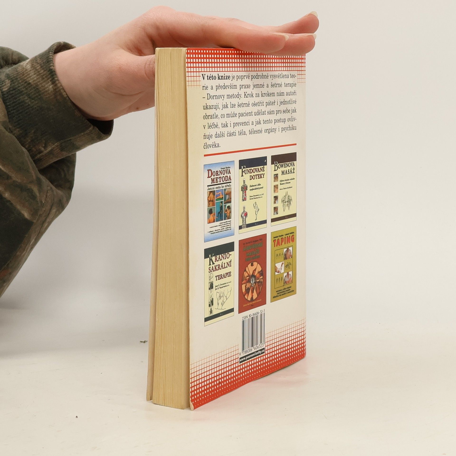 V této knize je podrobně vysvětlena teorie a především praxe jemné a šetrné terapie - Dornovy metody. Krok za krokem nám autoři ukazují, jak lze šetrně ošetřit páteř i jednotlivé obratle, co může pacient udělat sám pro sebe jak v léčbě, tak i v prevenci a jak tento postup ovlivňuje další části těla, tělesné orgány i psychiku člověka.