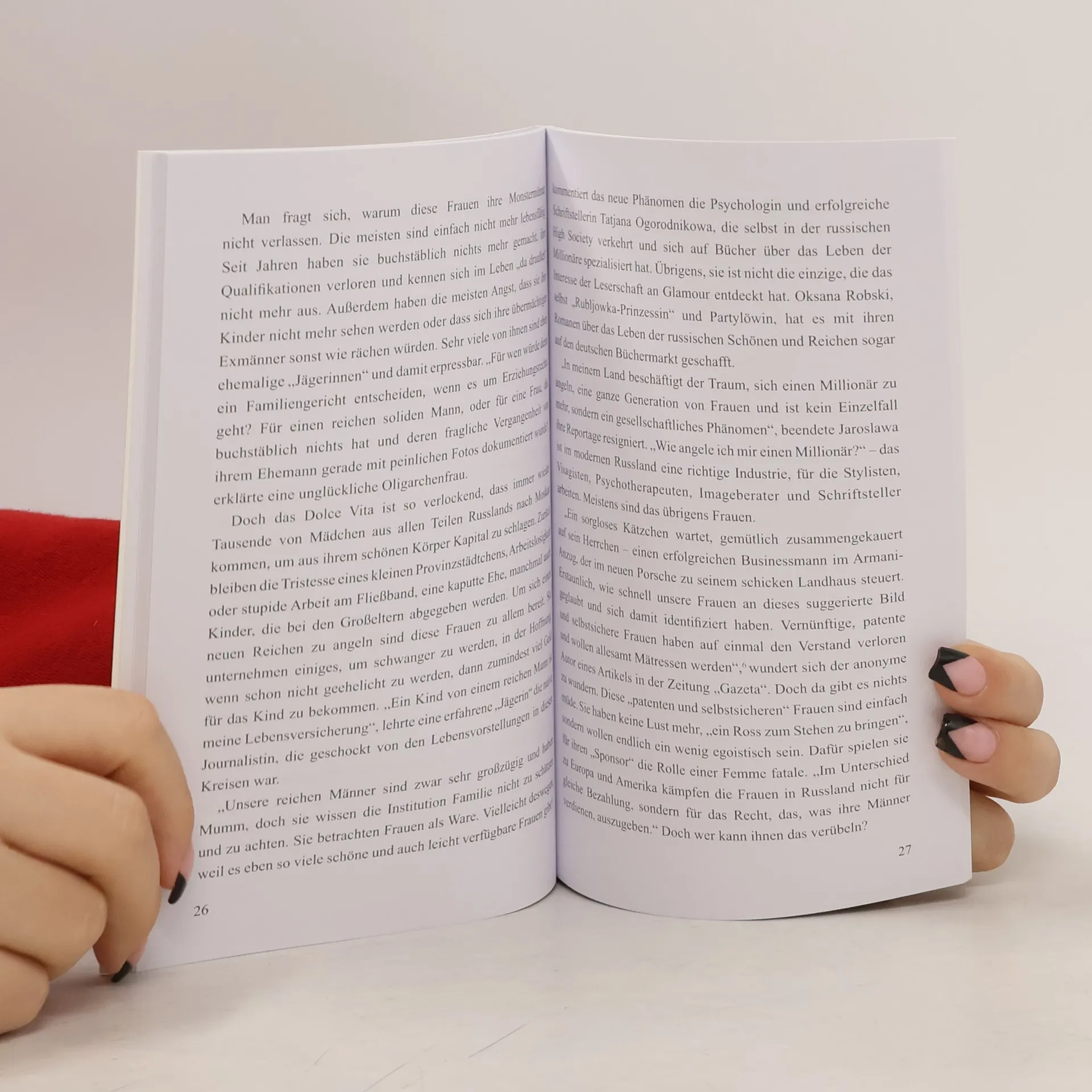 Alle Russinnen heißen Natascha und sind per Internet leicht zu haben. Nein, nein, sie sind dick, haben Goldzähne, heißen Babuschka und kommen als KGB Offiziere zur Welt. Über keine anderen Frauen gibt es so widersprüchliche und falsche Vorstellungen wie über russische. Dieses Buch verfolgt das Bild der russischen Frau in der Religion, in der klassischen russischen Literatur bis hin zur kommunistischen Zeit und im modernen Russland. Warum ist eine russische Geschäftsfrau erfolgreich, eine Oligarchengattin unglücklich und eine Familienmutter berufstätig? Und warum würden sie alle ihr letztes Geld für schöne Kleider ausgeben und schätzen ihre Weiblichkeit höher als ihre Unabhängigkeit? „Russische Frauen. Innen- und Außenansichten“ sucht und findet das wahre Gesicht der russischen Frau im Labyrinth der ewigen Stereotypen und Fremdbilder und räumt mit gängigen Klischees auf