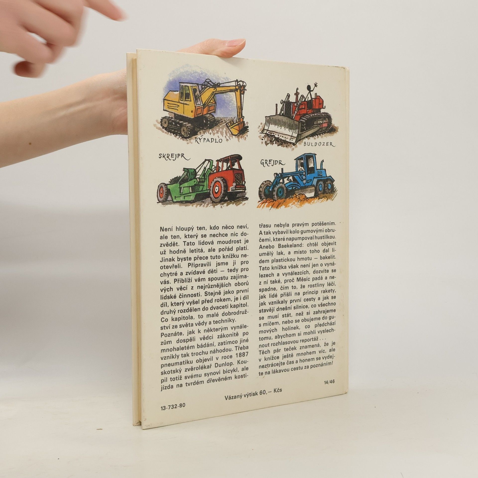 Tato knížka je o vynálezech a vynálezcích, ale také se dozvíme proč Měsíc padá a nespadne, čím to, že rostliny léčí, jak lidé přišli na princip rakety, jak vznikali první cesty a jak se stavějí dnešní silnice, co všechno se musí stát než si zahrajeme s míčem, nebo se obujeme do gumových holinek, co předchází tomu, abychom si mohli vyslechnout rozhlasovou reportáž...