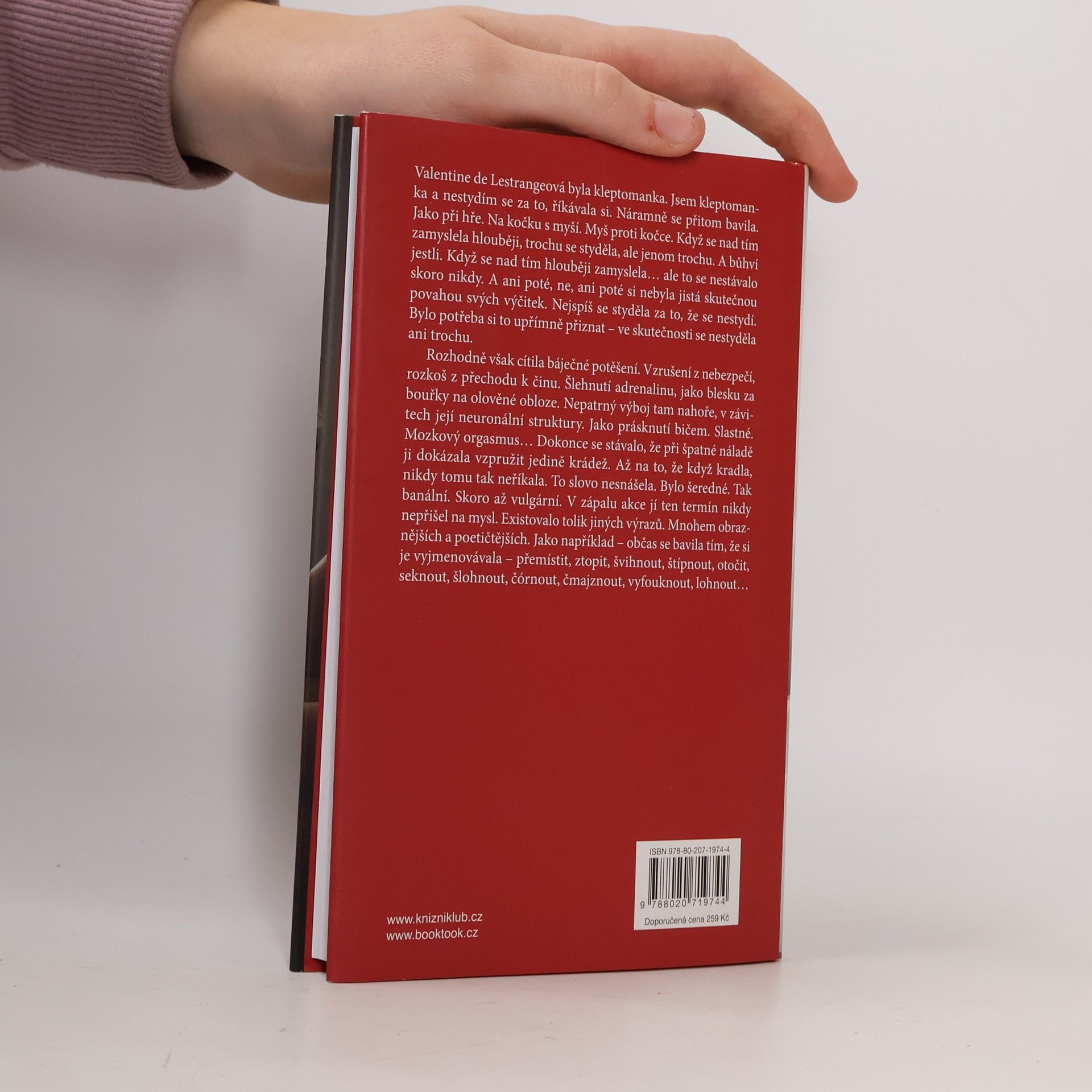 Valentine de Lestrange je úspěšnou znalkyní současného výtvarného umění. Žije v bezdětném manželství se zámožným bankéřem, který nyní zastává post ministra financí. Je totiž dobrým přítelem nového prezidenta republiky… Valentine vzpomíná na své dětství, kdy se začala bavit drobnými krádežemi. Spisovatelka důmyslně popisuje váhání své hrdinky v obchodech s luxusním zbožím, které by si mohla samozřejmě koupit, ale zcizování věcí jí přináší radost a vzrušení. Nedovede se ovládnout! Pak je však sama okradena a při tom přijde na zvláštní věc: její manžel ji nechává sledovat a ukradené věci za ni vždy uhradí. Svět, mnoho let příjemný a bezstarostný, najednou dostává pořádné trhliny…