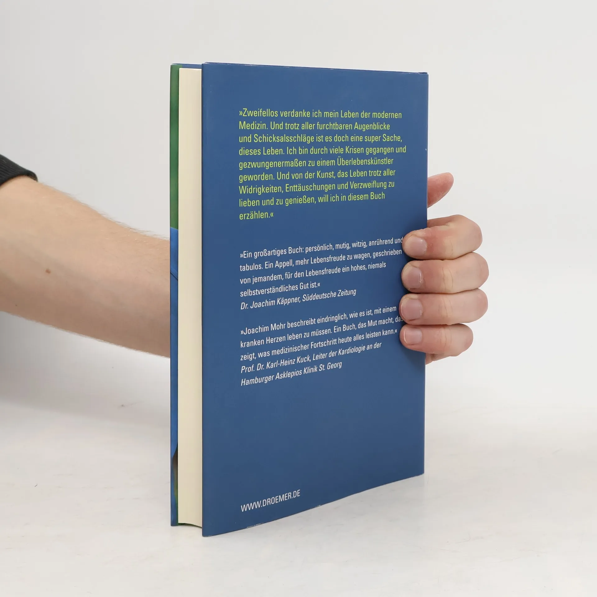 Joachim Mohr kommt mit einem kranken Herzen zur Welt. Ein Loch in der Herzscheidewand kann zwar durch eine Operation geschlossen werden, aber bis heute leidet er an äußerst gefährlichen Rhythmusstörungen. Sein Herz fängt oft von einer Sekunde zur nächsten an irrsinnig und chaotisch zu rasen. Mehrmals im Jahr können nur gezielte Elektroschocks sein Herz zwingen, wieder regelmäßig zu pumpen. Joachim Mohr ist mehrere Male von internationalen Spezialisten am Herzen operiert worden – doch gesund wird er wahrscheinlich nie werden. Aber es besteht kein Zweifel: Ohne die sagenhaften Leistungen der moderne Medizin wäre Joachim Mohr längst tot, nicht nur einmal, sondern mehrfach gestorben. Und mit jeder medizinisch-technischen Innovation steigen seine Chancen, die durchschnittliche Lebenserwartung zu erreichen. Auch wenn Ängste und Wartezimmer zu seinem Alltag gehören – Joachim Mohr lebt das Leben, das er sich wünscht. Zu einer Traumreise gehören für ihn eben genauso beeindruckende Landschaften wie die rasche Erreichbarkeit guter Kardiologen. Sein alkoholfreies Bier genießt er mehr, als andere ein Glas teuren Weins. Er glaubt an die helfende Kraft des Galgenhumors und daran, dass Narben auch sexy sein können. Als Journalist beim SPIEGEL kann er in seinem Traumberuf arbeiten. Er freut sich an jedem Moment mit seiner Frau und seiner Tochter – das Loch in seinem Herzen und die helfenden Ärzte gehören eben dazu.