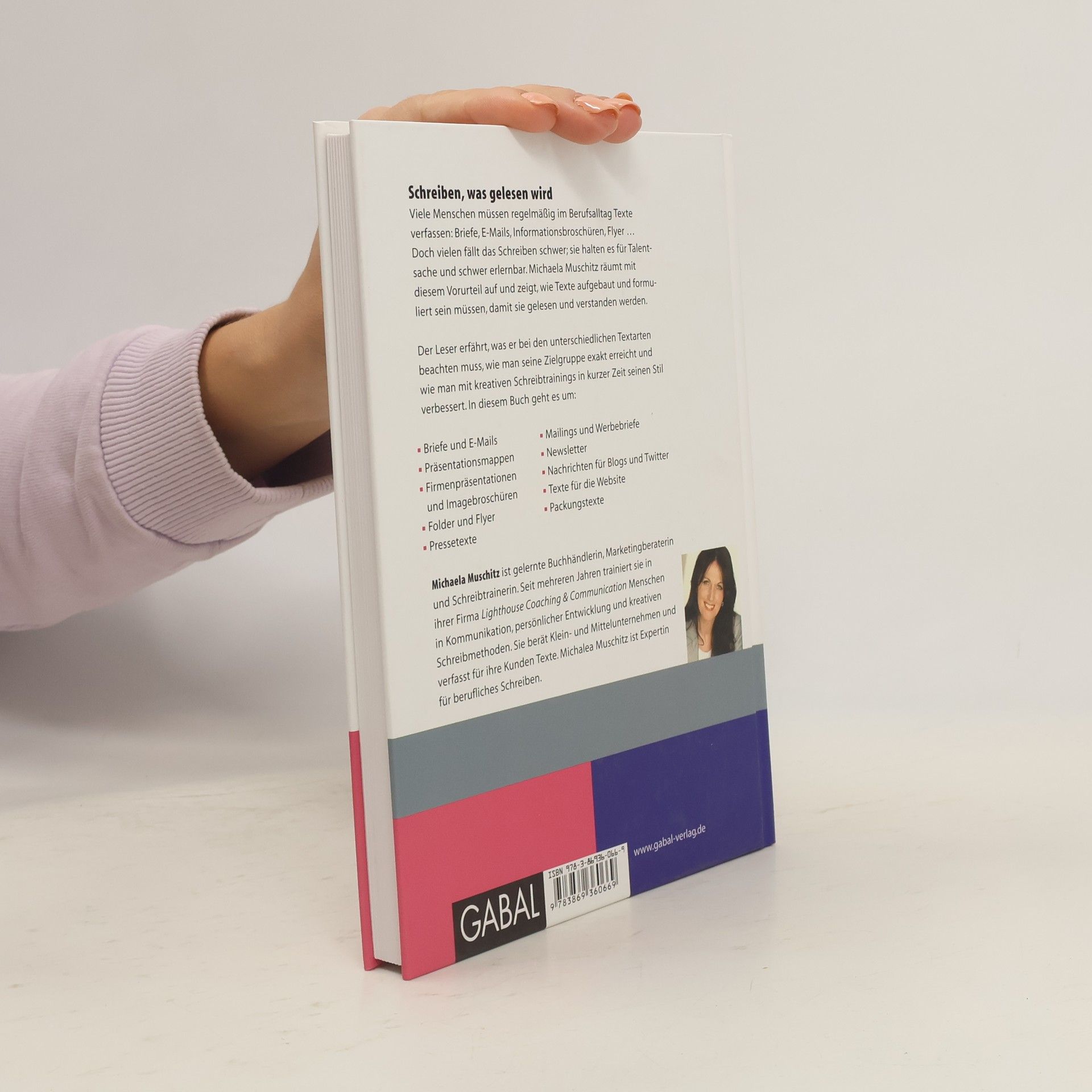 Wie müssen Texte aufgebaut sein, damit sie gerne gelesen werden? Was muss man bei unterschiedlichen Textsorten beachten – vom Angebot über ein Mailing bis hin zur Website? Michaela Muschitz verknüpft ihr Knowhow als Marketingexpertin mit ihrer Erfahrung als Schreibprofi und verrät Ihnen ihre Textertricks. Der Leser erfährt, wie man ein Konzept für einen Text erstellt, wie man mit kreativen Schreibmethoden in kurzer Zeit originelle Zeilen so formuliert, dass sie auf die Zielgruppe abgestimmt sind. Alle Textformen werden praxisnah erläutert, den Abschluss des Buches bildet ein eigenes spannendes Kapitel über Texten in eigener Sache.