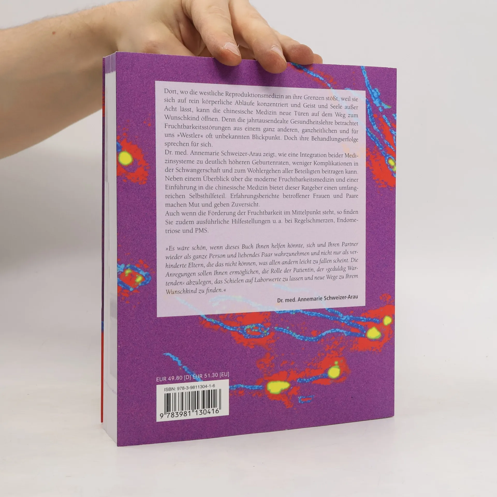 "Dort, wo die westliche Reproduktionsmedizin an ihre Grenzen stößt, weil sie sich auf rein körperliche Abläufe konzentriert und Geist und Seele außer Acht lässt, kann die chinesische Medizin neue Türen auf dem Weg zum Wunschkind öffnen. Denn die jahrtausendealte Gesundheitslehre betrachtet Fruchtbarkeitsstörungen aus einem ganz anderen, ganzheitlichen und für uns 'Westler' oft unbekannten Blickpunkt. Doch ihre Behandlungserfolge sprechen für sich. Dr. med. Annemarie Schweizer-Arau zeigt, wie eine Integration beider Medizinsysteme zu deutlich höheren Geburtenraten, weniger Komplikationen in der Schwangerschaft und zum Wohlergehen aller Beteiligten beitragen kann. Neben einem Überblick über die moderne Fruchtbarkeitsmedizin und einer Einführung in die chinesische Medizin bietet dieser Ratgeber einen umfangreichen Selbsthilfeteil. Erfahrungsberichte betroffener Frauen und Paare machen Mut und geben Zuversicht. Auch wenn die Förderung der Fruchtbarkeit im Mittelpunkt steht, so finden Sie zudem ausführliche Hilfestellungen u. a. bei Regelschmerzen, Endometriose und PMS. Meridiane, Geschlechtsorgane, Reflexzonen, Zyklus